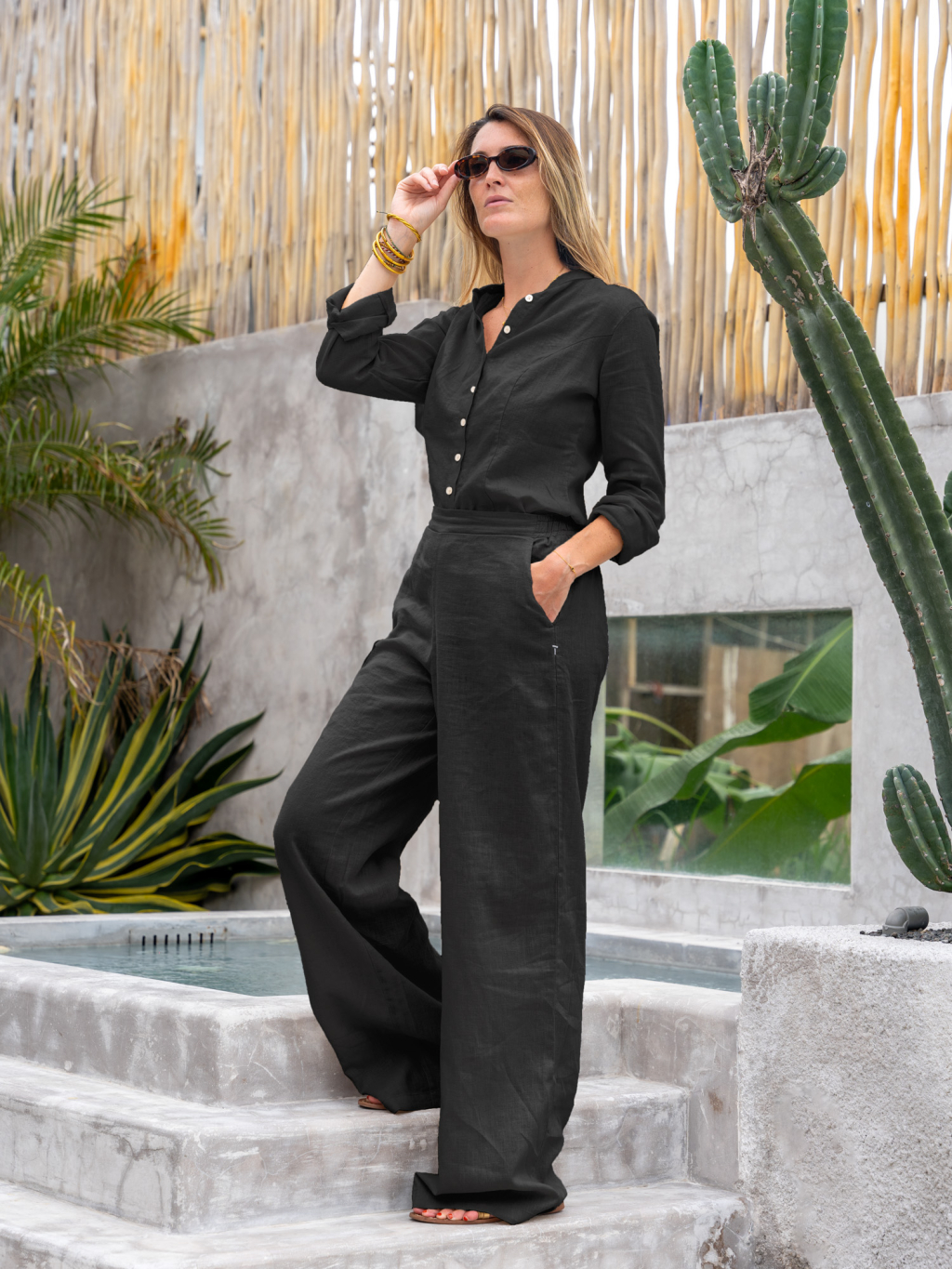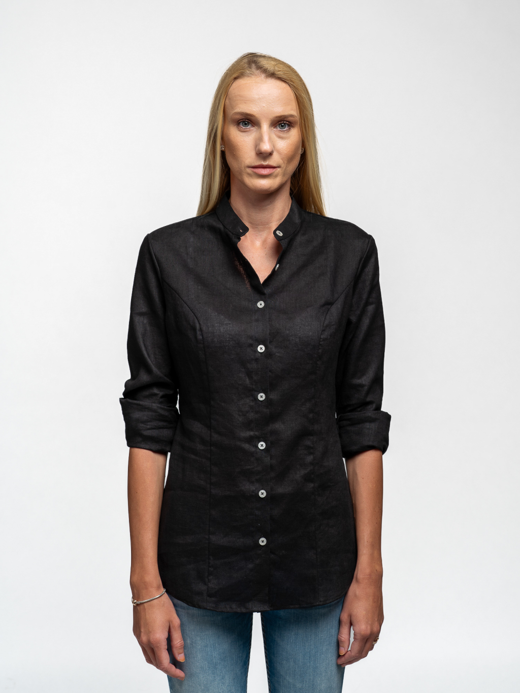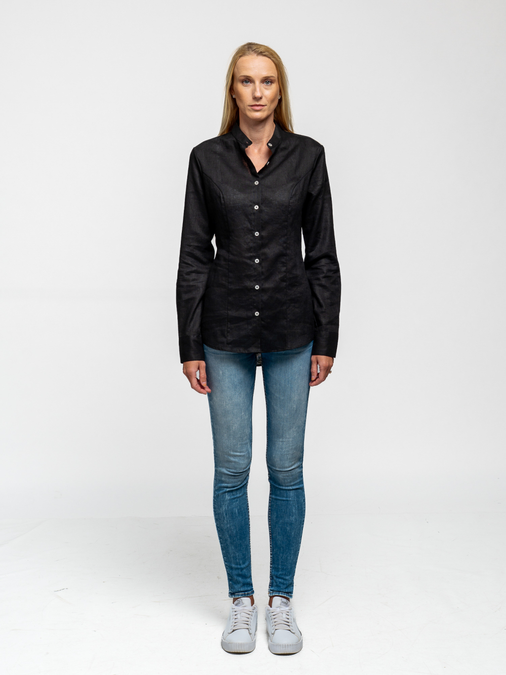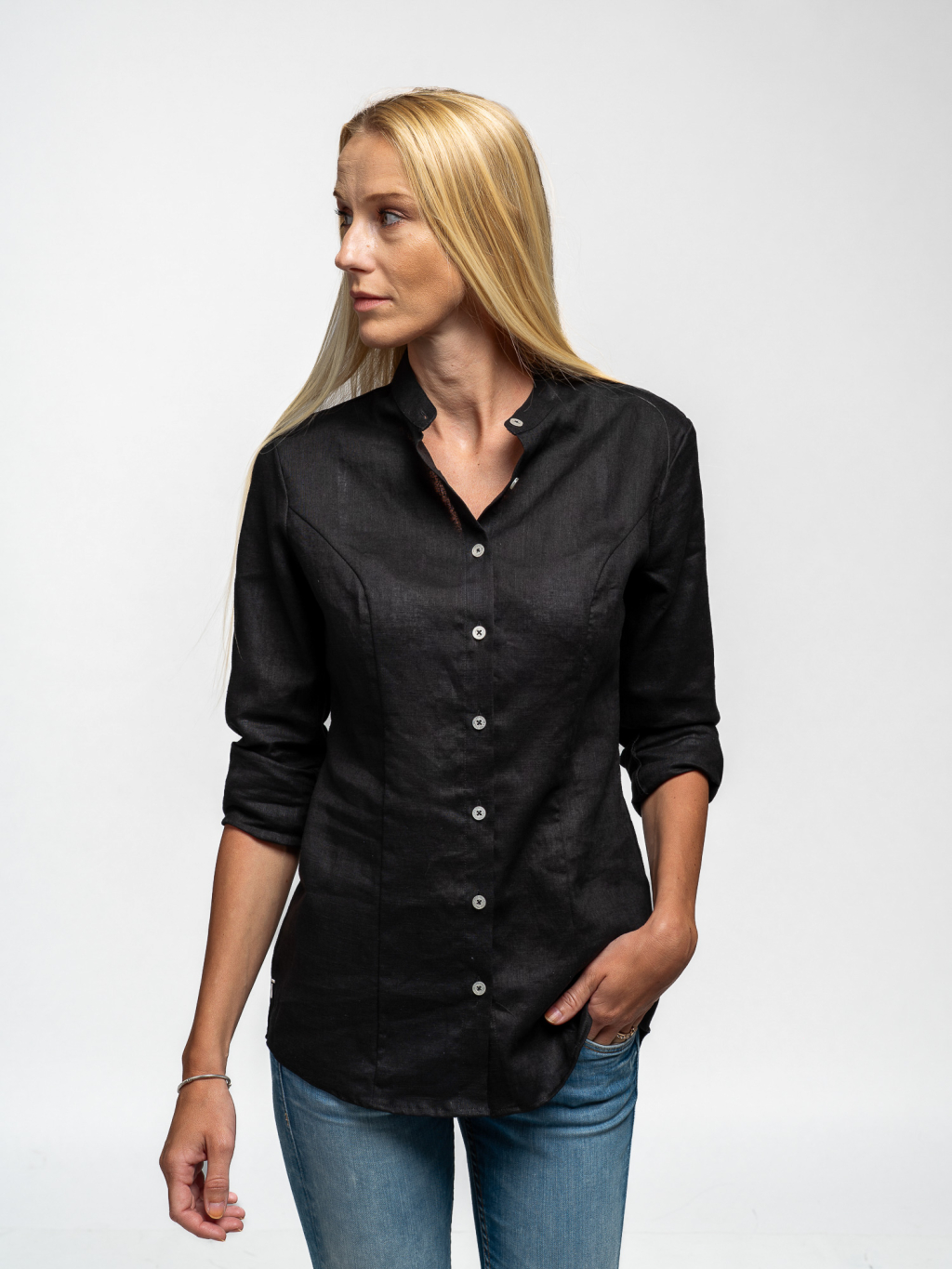 Dámská prodloužená lněná košile | Dlouhý rukáv | Deep black