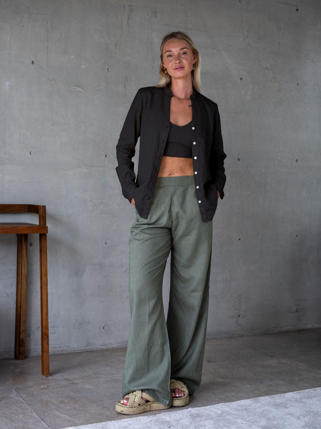 Košili můžeš nosit zapnutou nebo rozepnutou přes top či plavky, skvěle se hodí k našim lněným kalhotám a kraťasům.