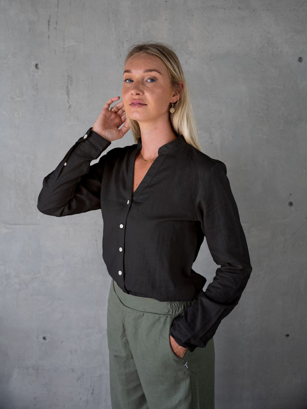 Prodloužená lněná košile s výstřihem do V, ve které se budeš cítit přirozeně, pohodlně a sebevědomě. Navrhnuta a vyrobena v ČR z přírodního materiálu, který se s každým nošením se stává jemnějším, takže se v něm budeš cítit čím dál lépe. Prodloužený střih ti zajistí, že perfektně sedne i těm nejvyšším.