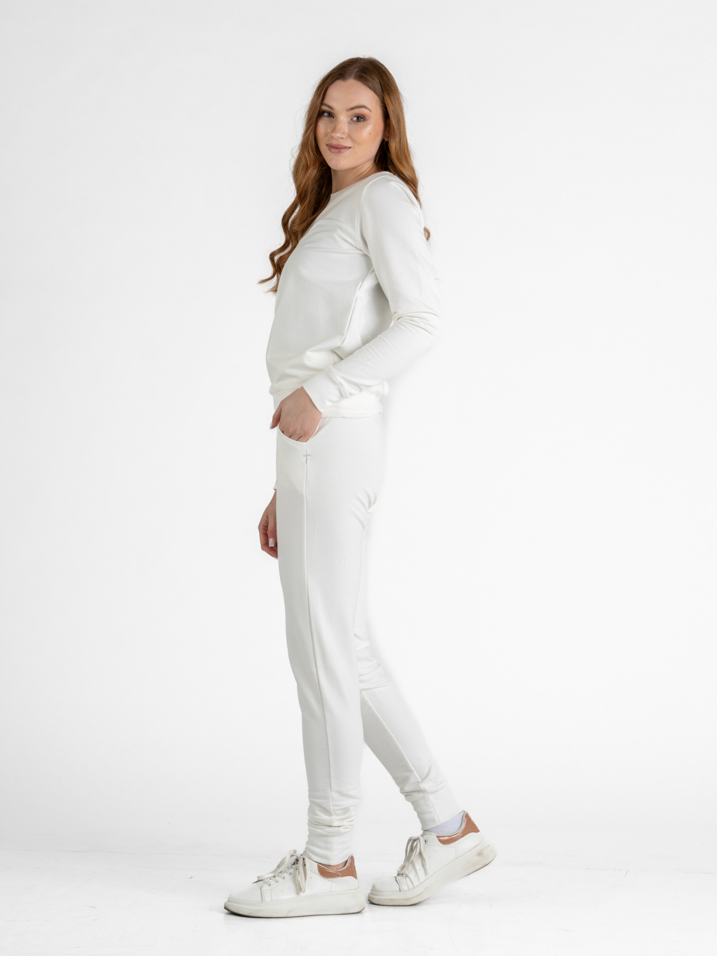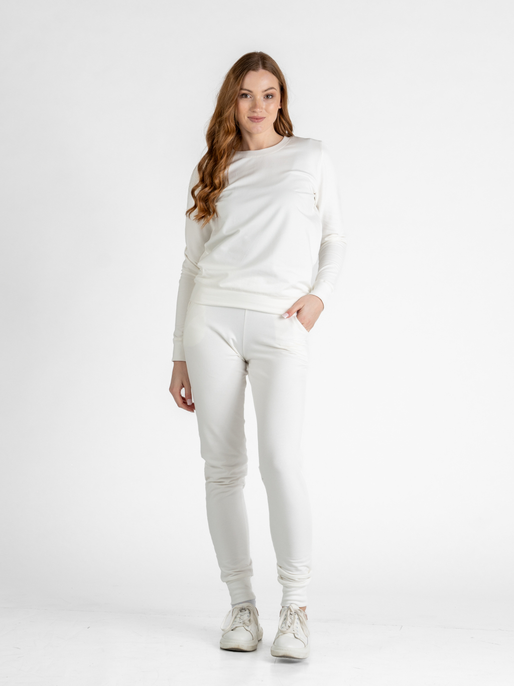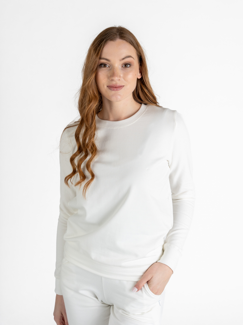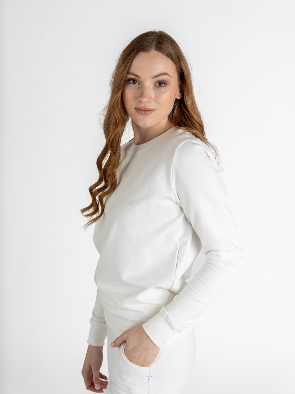 Dámská prodloužená mikina bez kapuce | Off-white