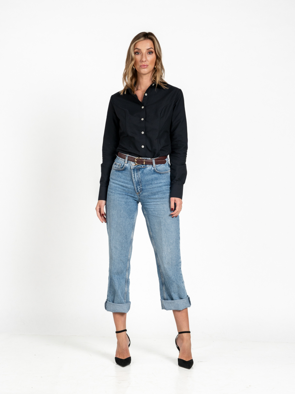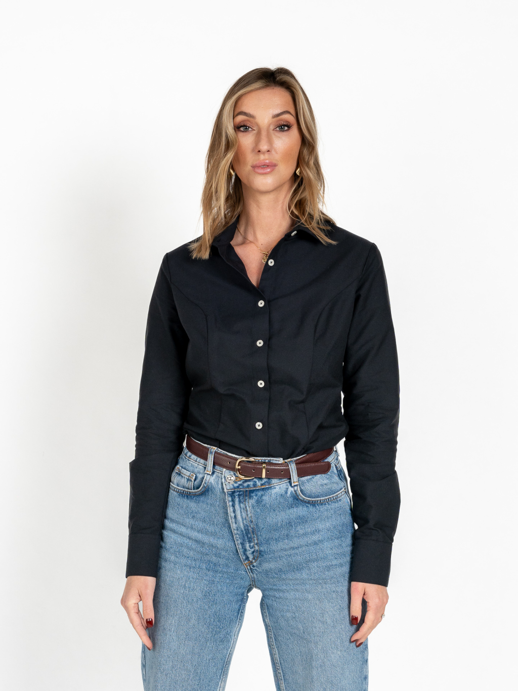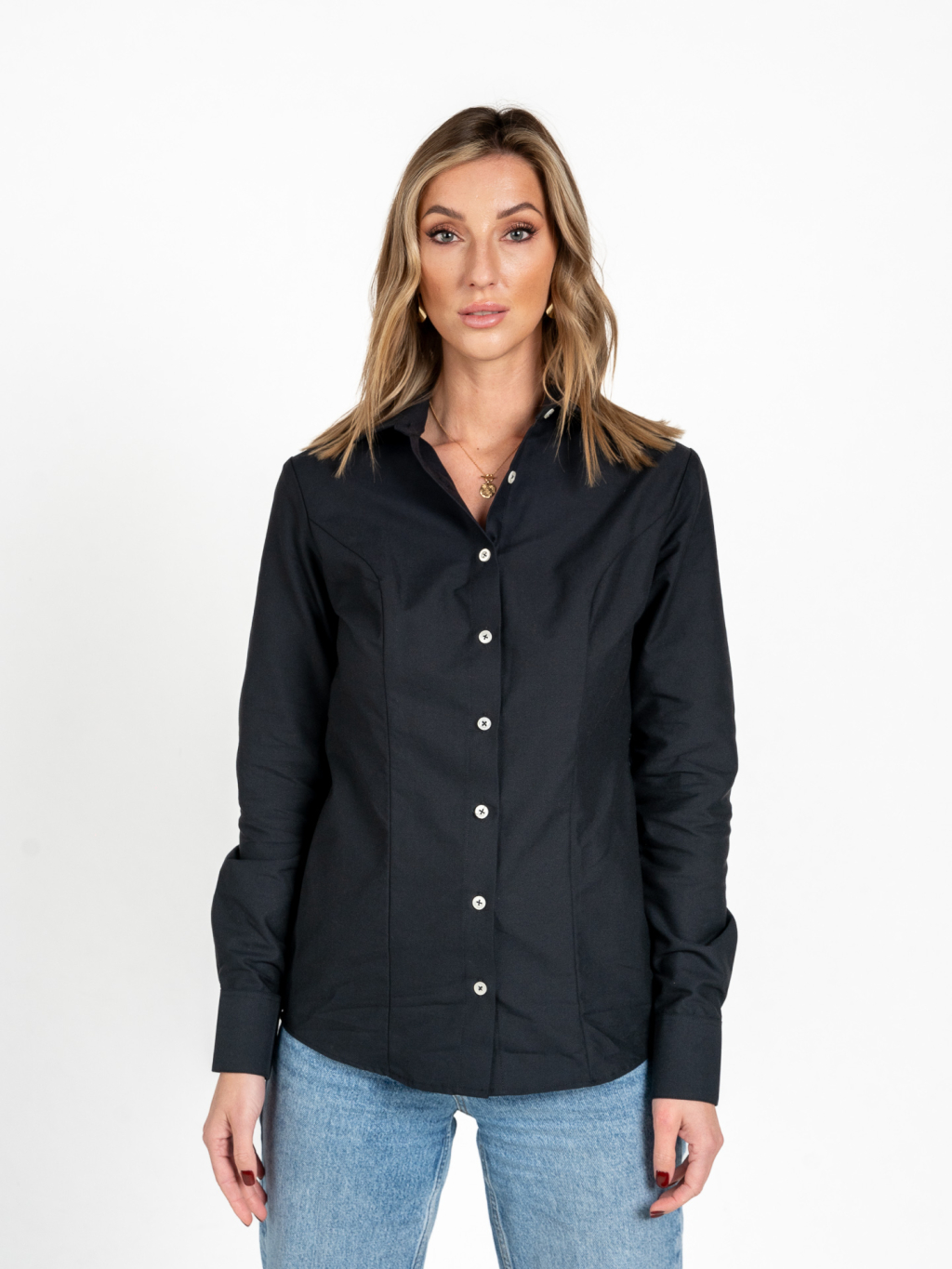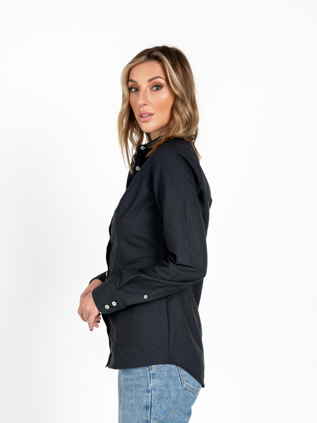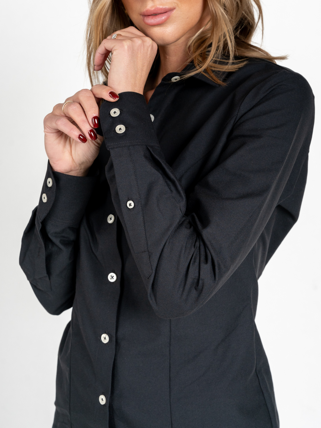 Dámská prodloužená Oxford košile | Dlouhý rukáv | Deep black