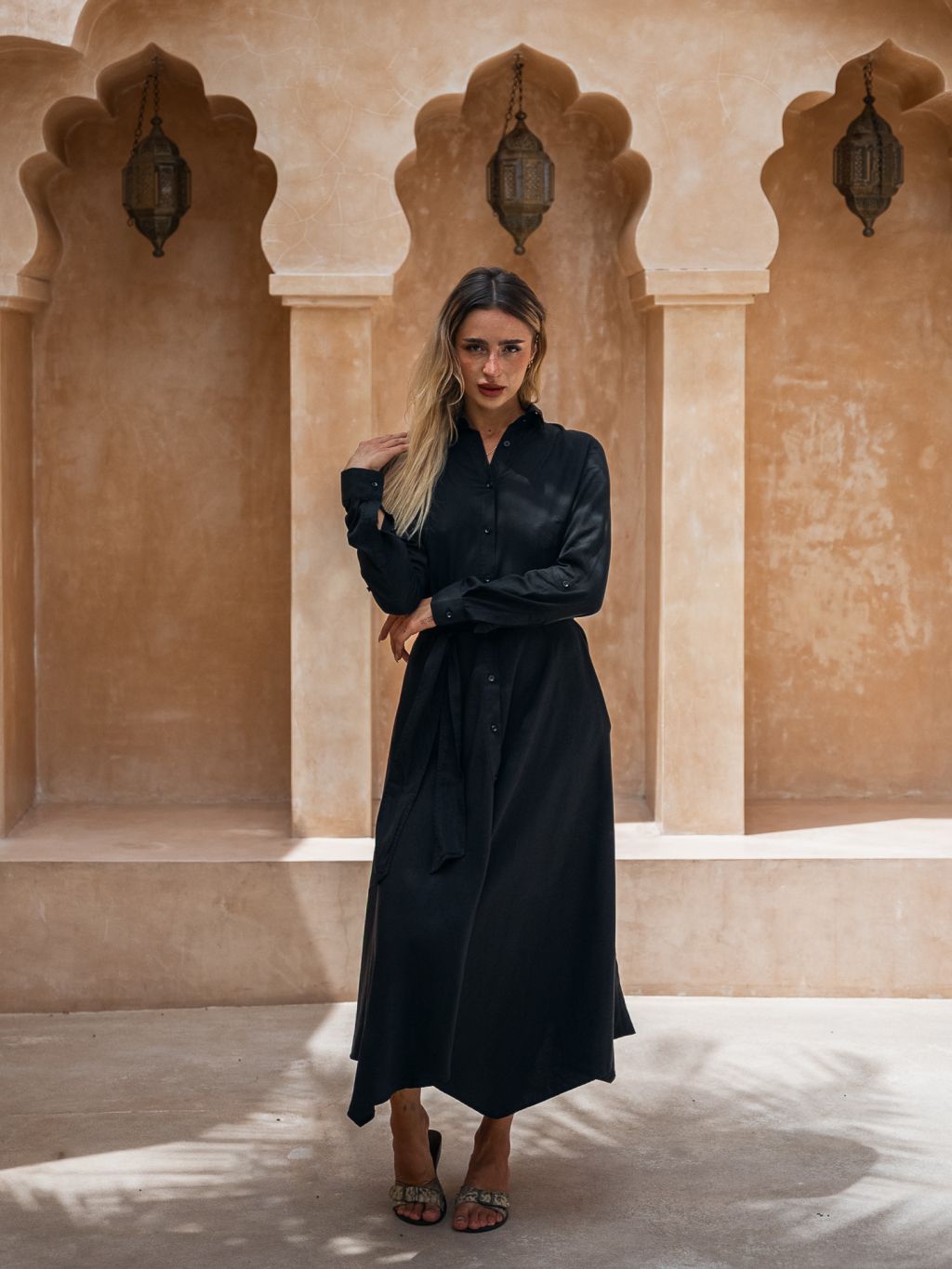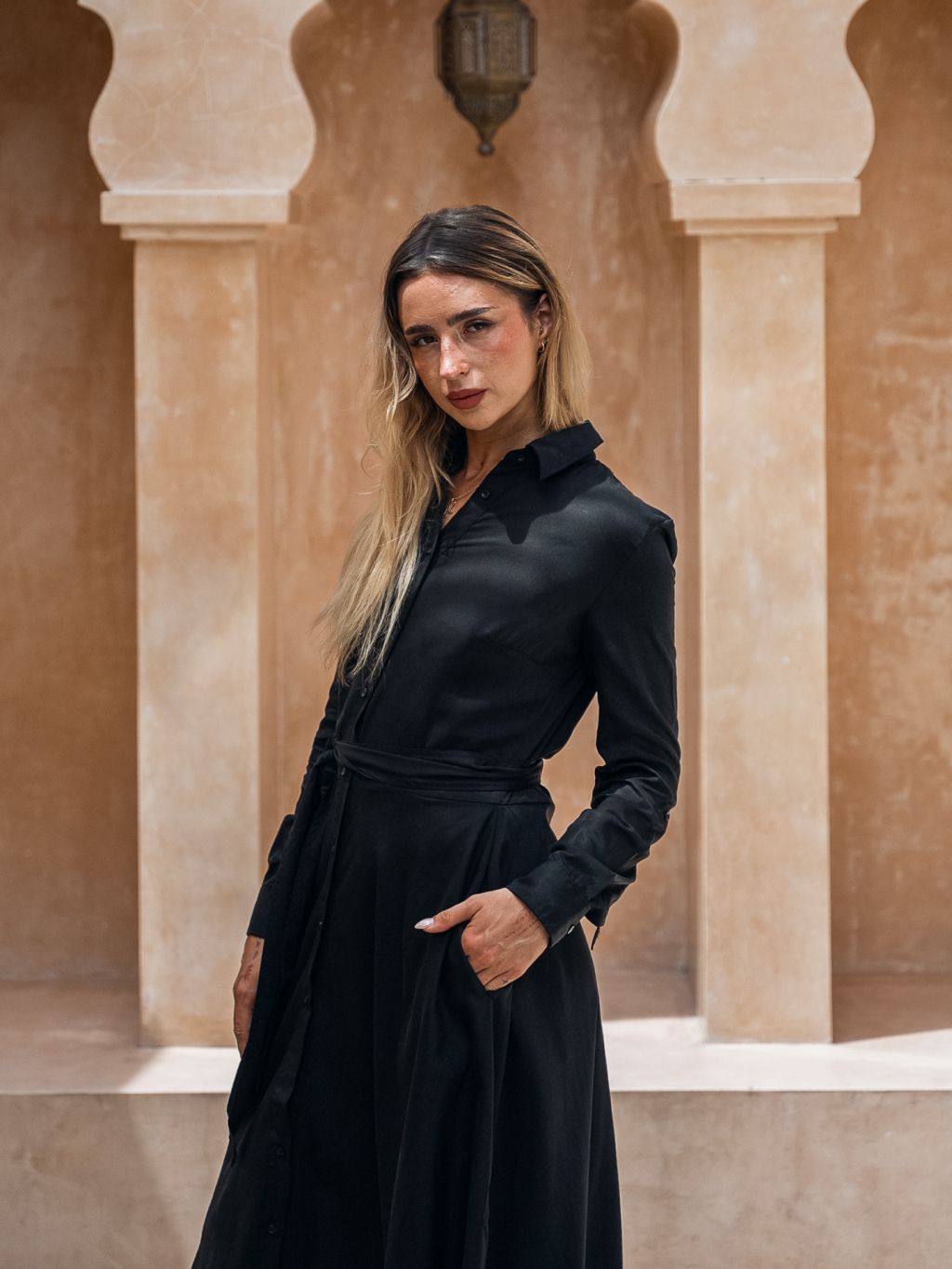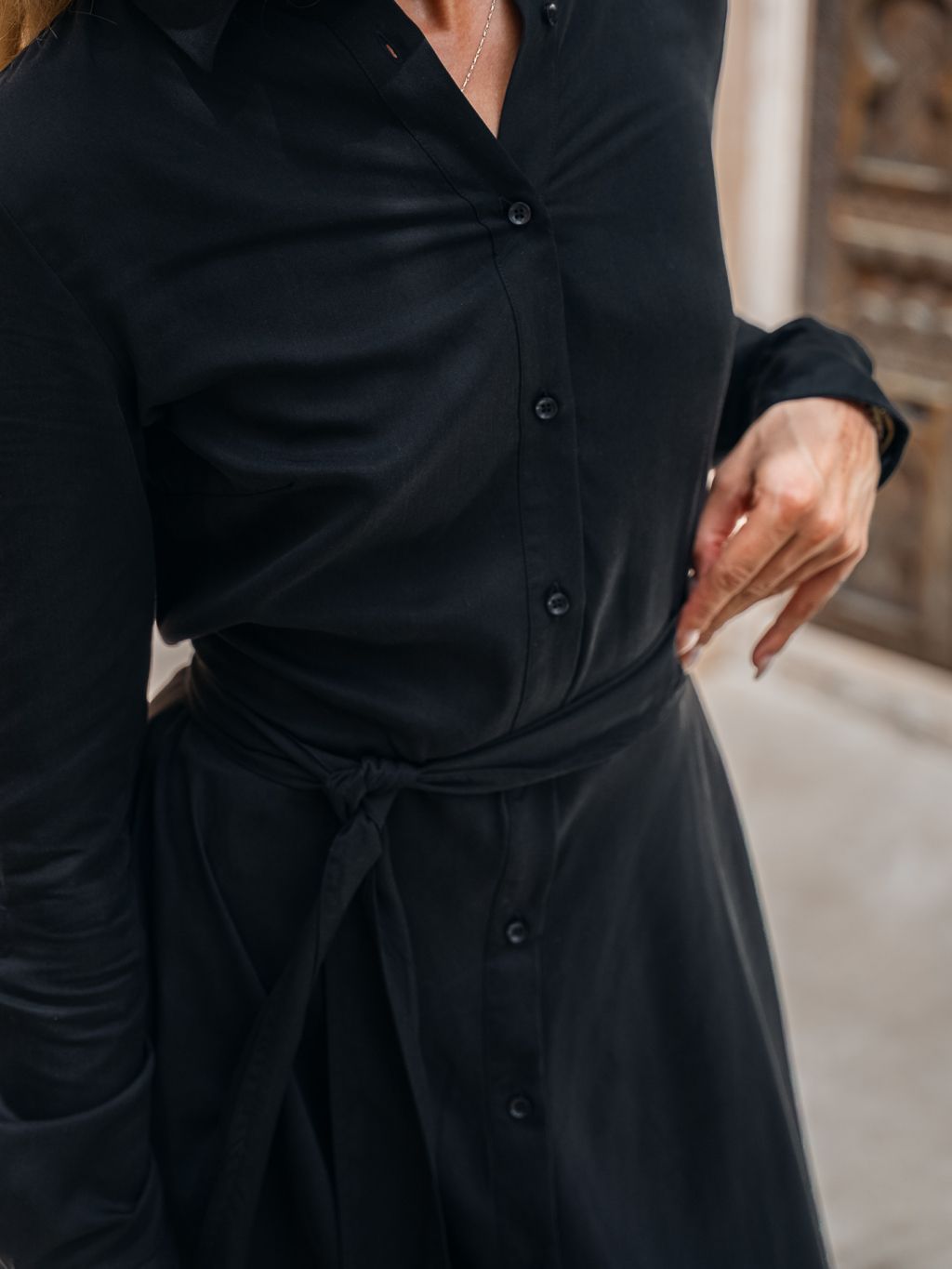 Tencel™ Lyocell vzniká z obnovitelného přírodního zdroje a je oblíbený pro svou jemnost, prodyšnost a schopnost odvádět vlhkost. Materiál krásně splývá, je velmi příjemný na dotek a díky sandwash úpravě má jemný a přirozeně matný vzhled. Oblečení z tencelu působí lehce, upraveně a využiješ je do města, na dovolenou, do práce i na večerní nošení.