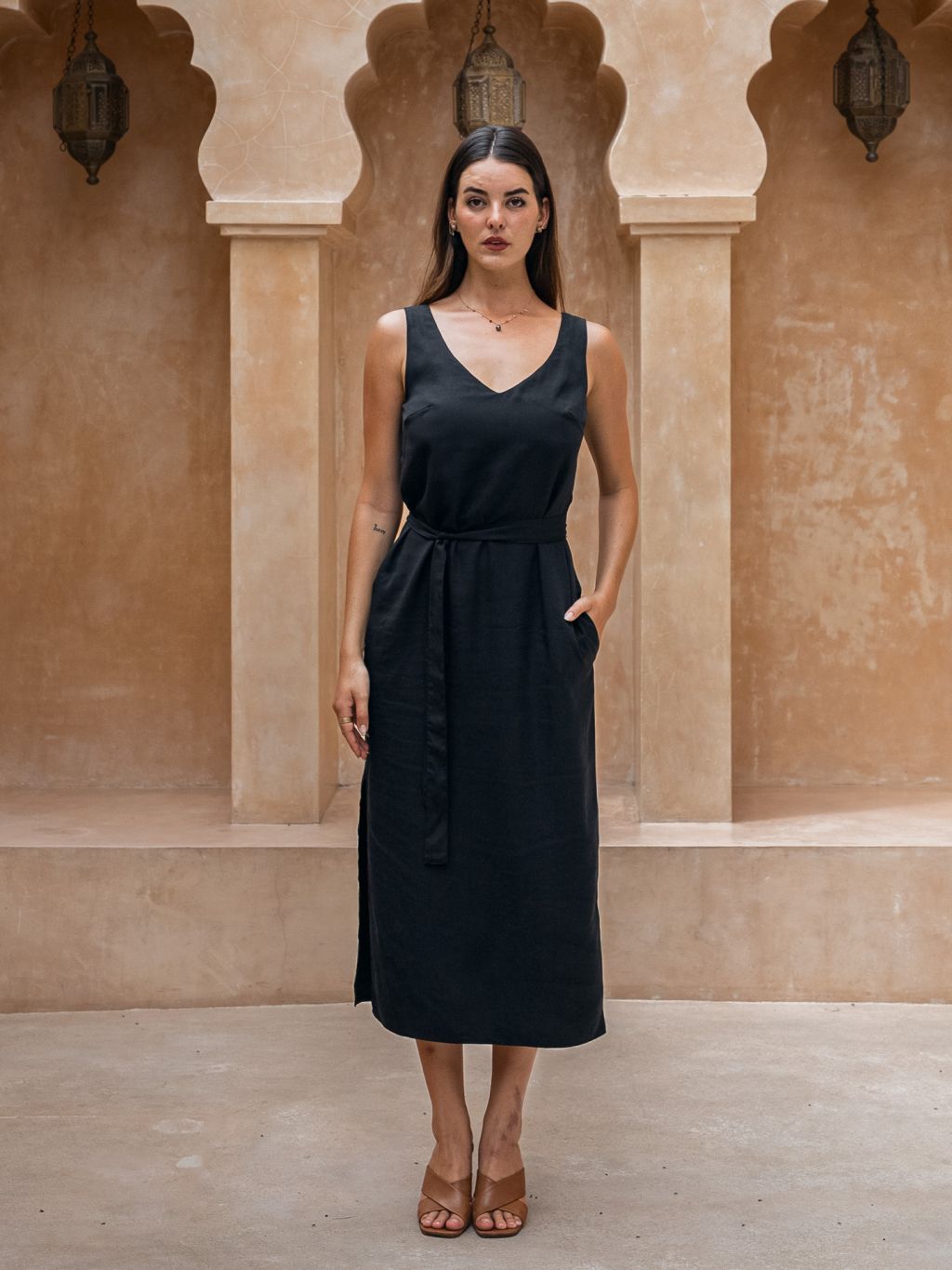 Tencel™ Lyocell vzniká z obnovitelného přírodního zdroje a je oblíbený pro svou jemnost, prodyšnost a schopnost odvádět vlhkost. Materiál krásně splývá, je velmi příjemný na dotek a díky sandwash úpravě má jemný a přirozeně matný vzhled. Oblečení z tencelu působí lehce, upraveně a využiješ je do města, na dovolenou, do práce i na večerní nošení.