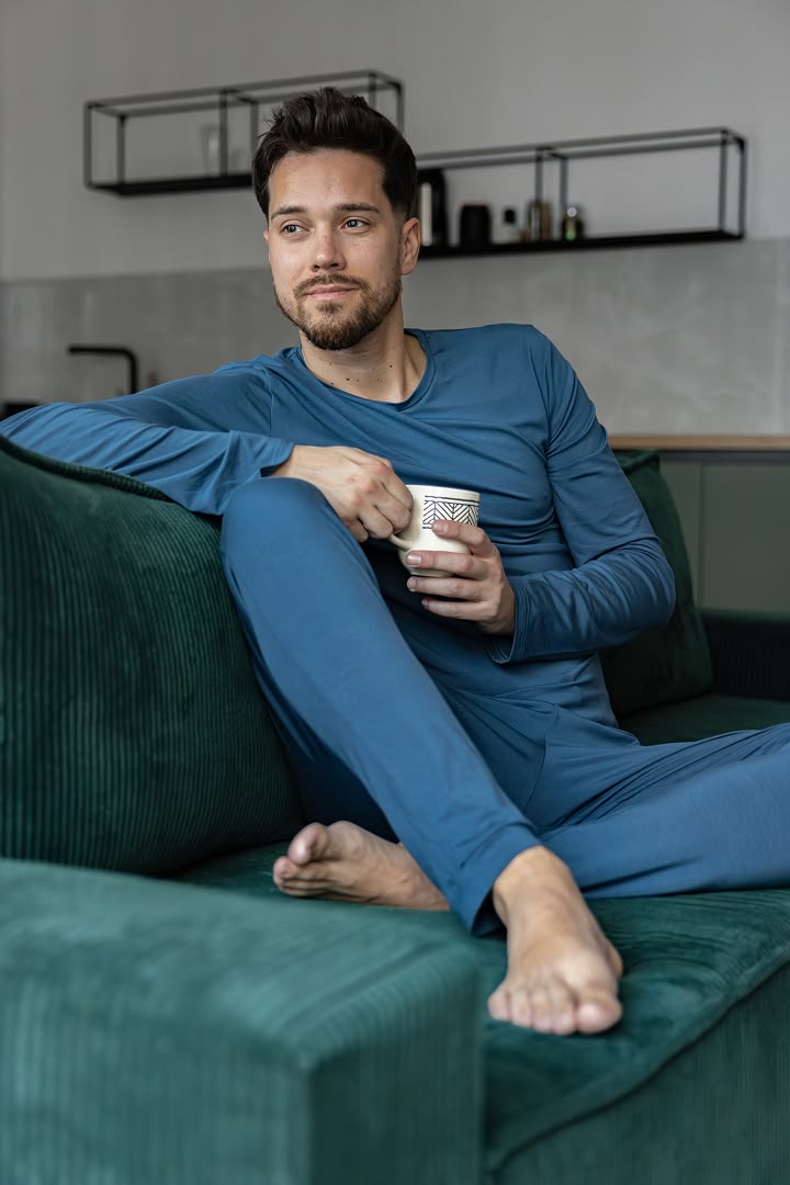 Men's elongated pajama pants and shorts made of micromodal, a natural material produced in the Czech Republic offer tall men comfort, freedom, and the right length. The soft and breathable fabric does not constrict, holds its shape, and the pajama pieces will ensure a peaceful sleep, relaxing at home, or slow morning awakenings with a light, pleasant feeling.