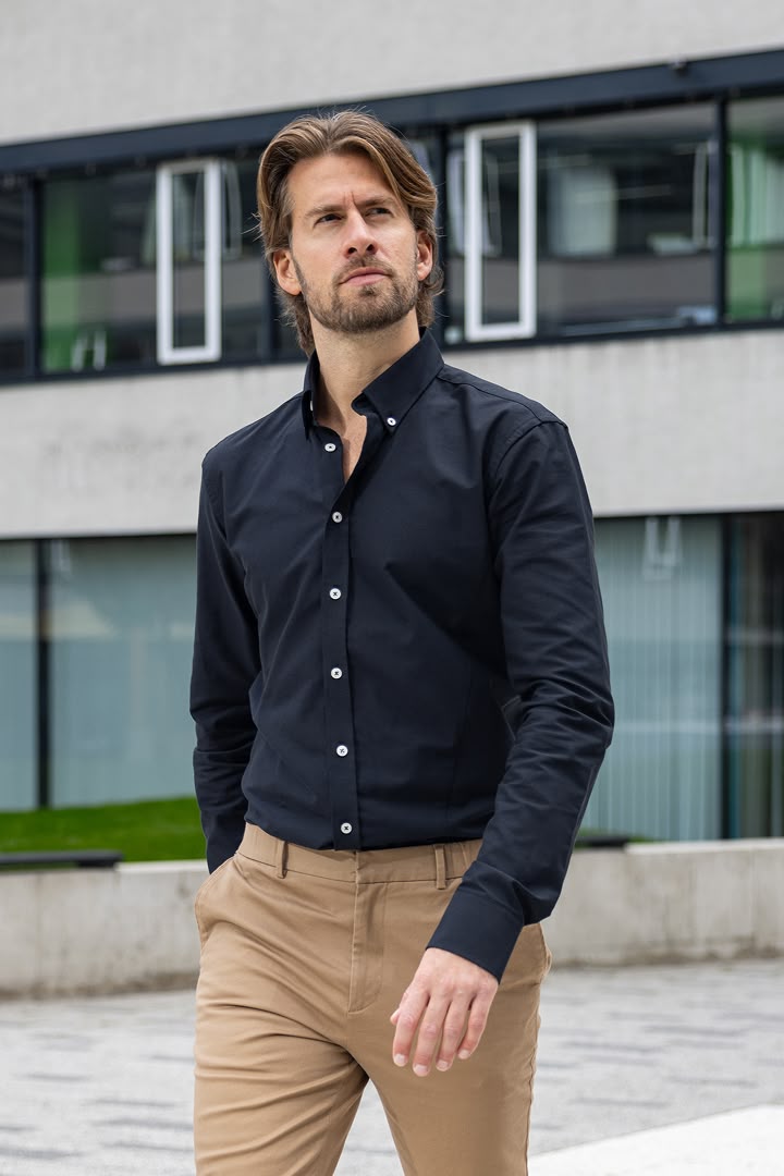 Men's elongated Oxford shirts made of 100% cotton produced in the Czech Republic are ideal for tall men who want a timeless, clean, and reliably fitting style. The structured fabric holds its shape, the collar looks neat, and the shirt easily transitions between a formal outfit and a smart casual combination, which you will wear all year round in complete comfort.