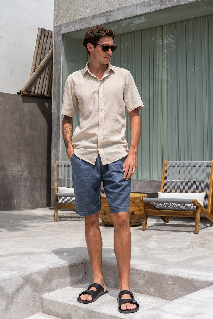 Pánské prodloužené lněné kraťasy z přírodního lnu vyrobené v ČR jsou ideální pro vysoké muže, kteří chtějí lehkost, vzdušnost a pohodlnou délku do letních dnů. Len příjemně chladí, dobře dýchá a drží přirozenou strukturu, takže kraťasy zvládnou město, dovolenou, cestování i volný čas s uvolněným letním stylem.
