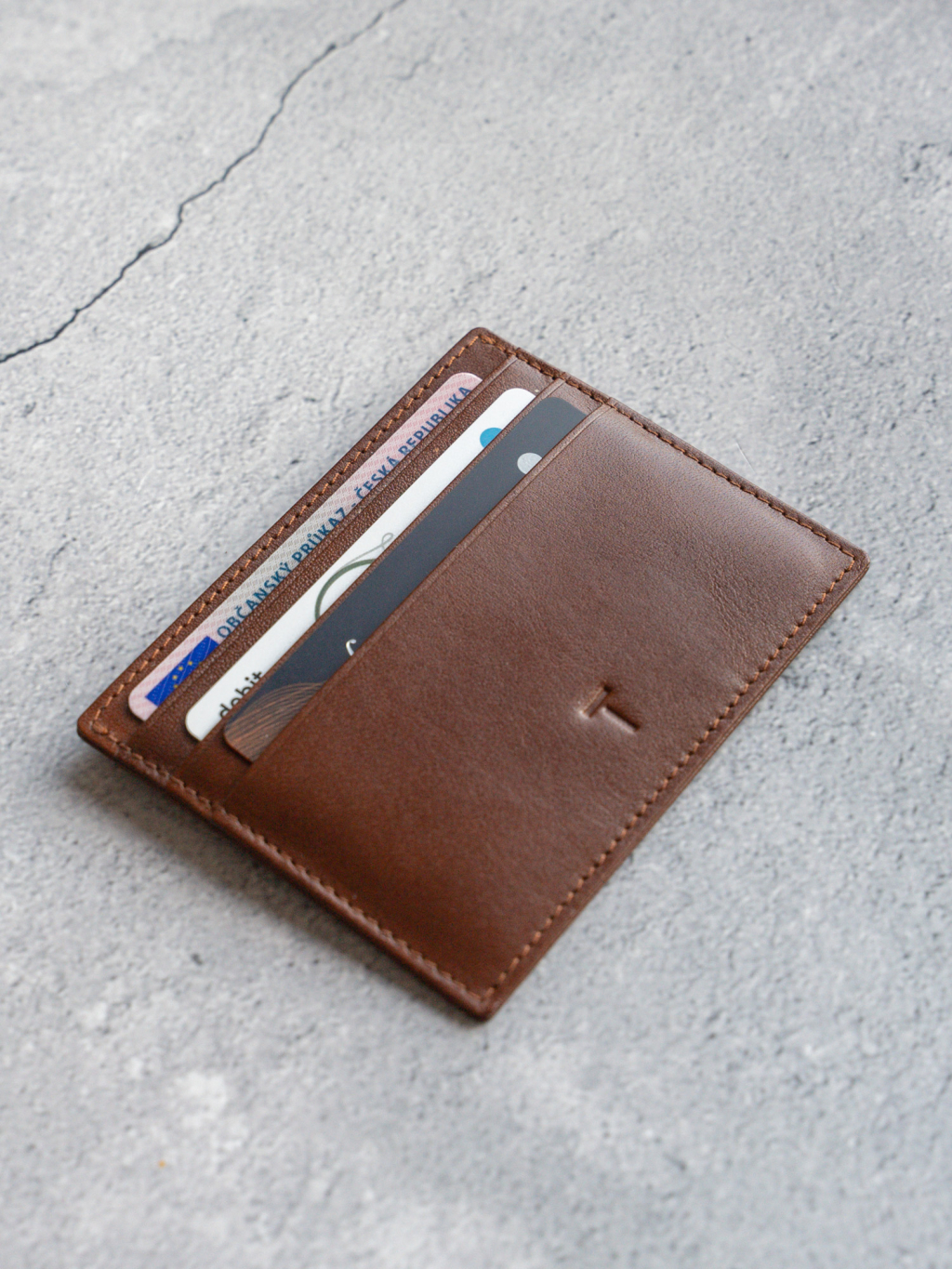 Na výrobu kožených peněženek jsme zvolili rostlinně činěnou kůži [vegetable tanned leather]. Kůže prochází speciální anilinovou úpravou, při které se aplikuje transparentní barvivo na bázi anilinu (přírodní). Tento způsob úpravy umožňuje, aby byla viditelná přirozená textura a struktura kůže, včetně jejích znaků a nedokonalostí.