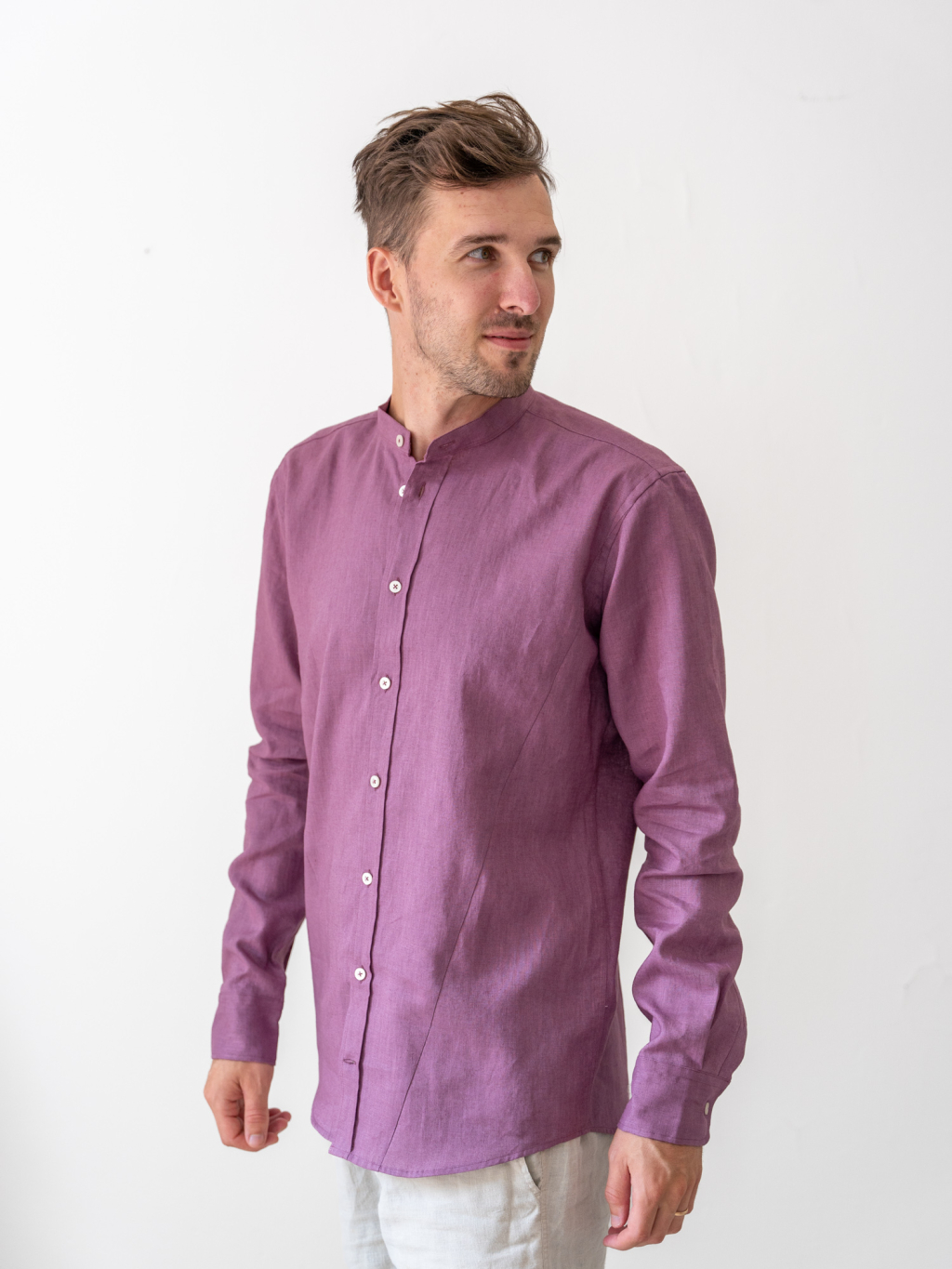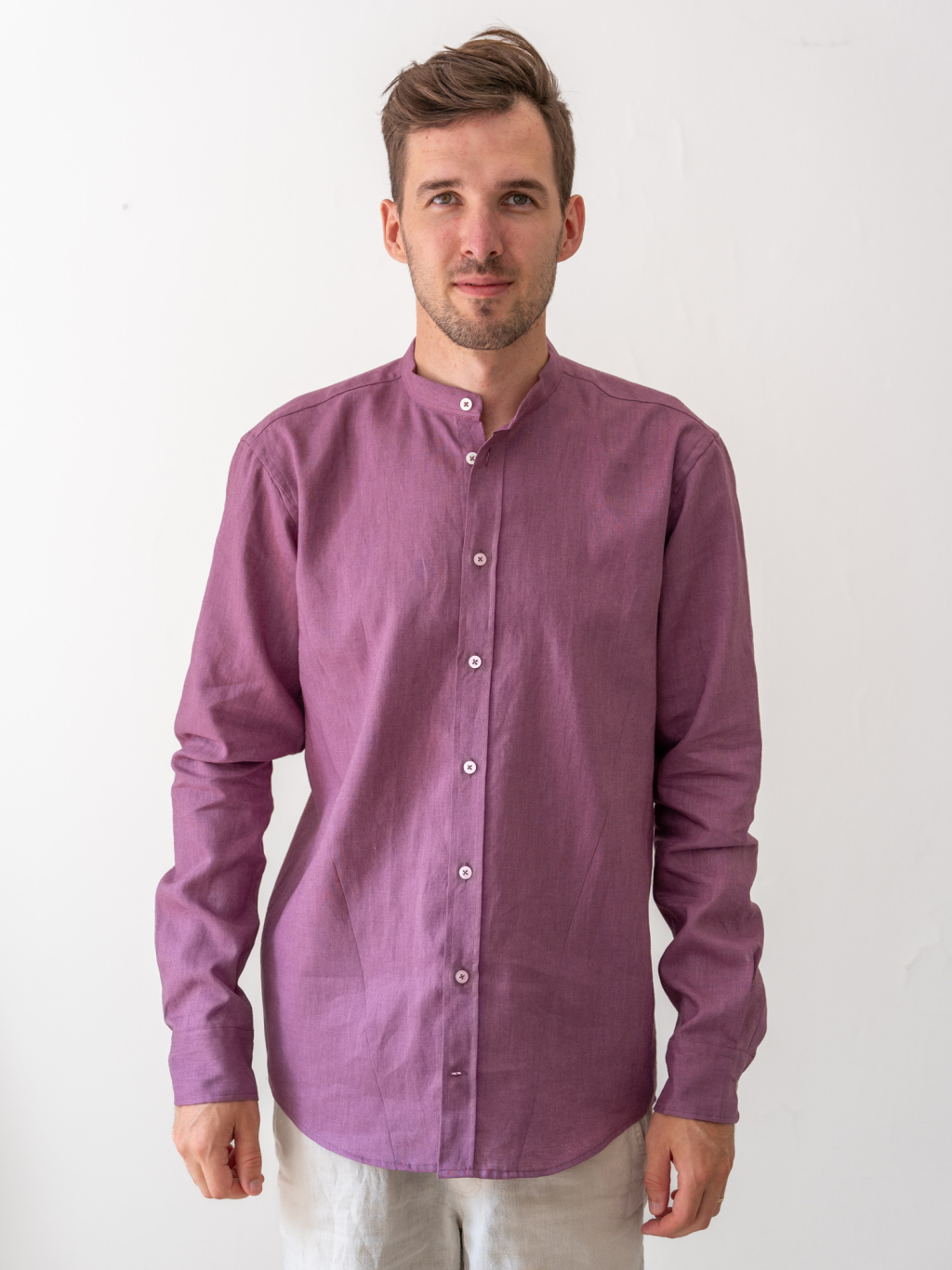 Pánská prodloužená lněná košile 2.0 | Dlouhý rukáv | Aubergine
