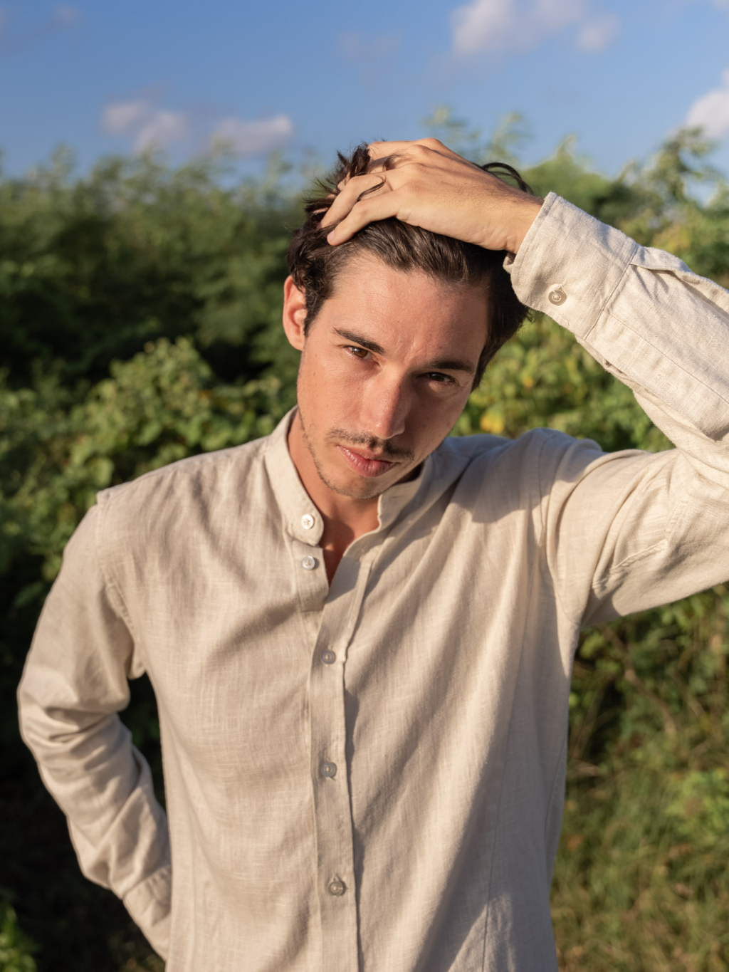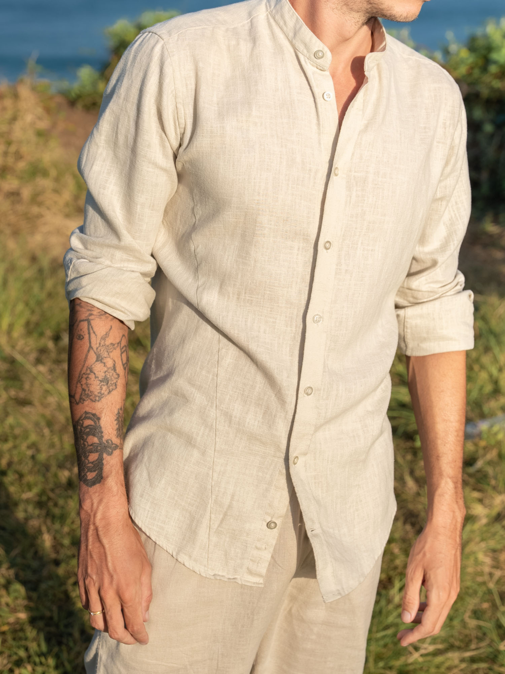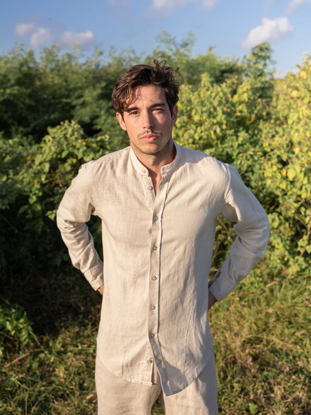 Pánská prodloužená lněná košile 2.0 | Dlouhý rukáv | Natural