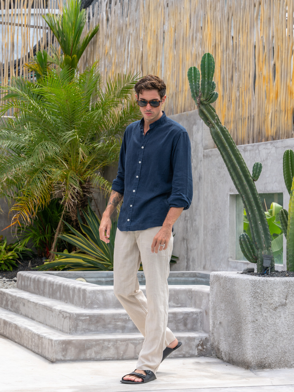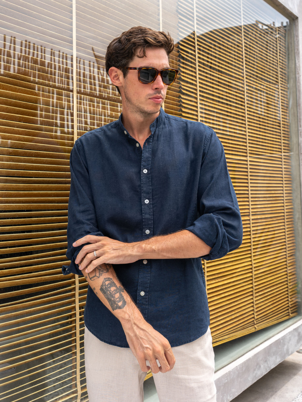 Pánská prodloužená lněná košile 2.0 | Dlouhý rukáv | Navy