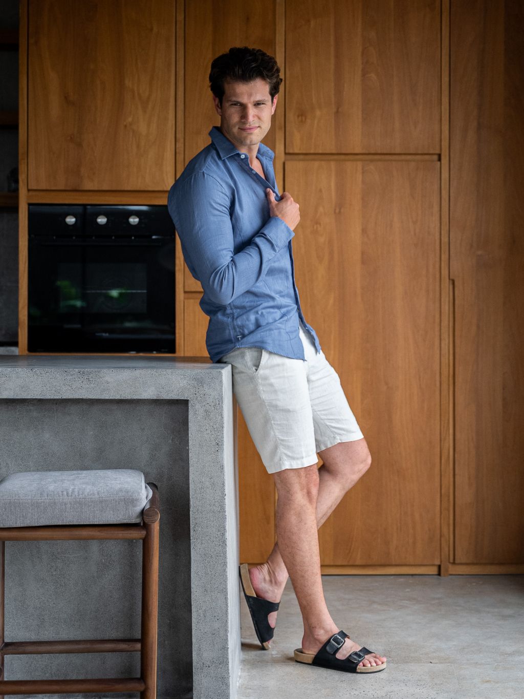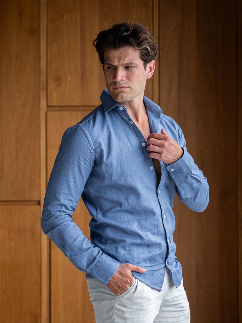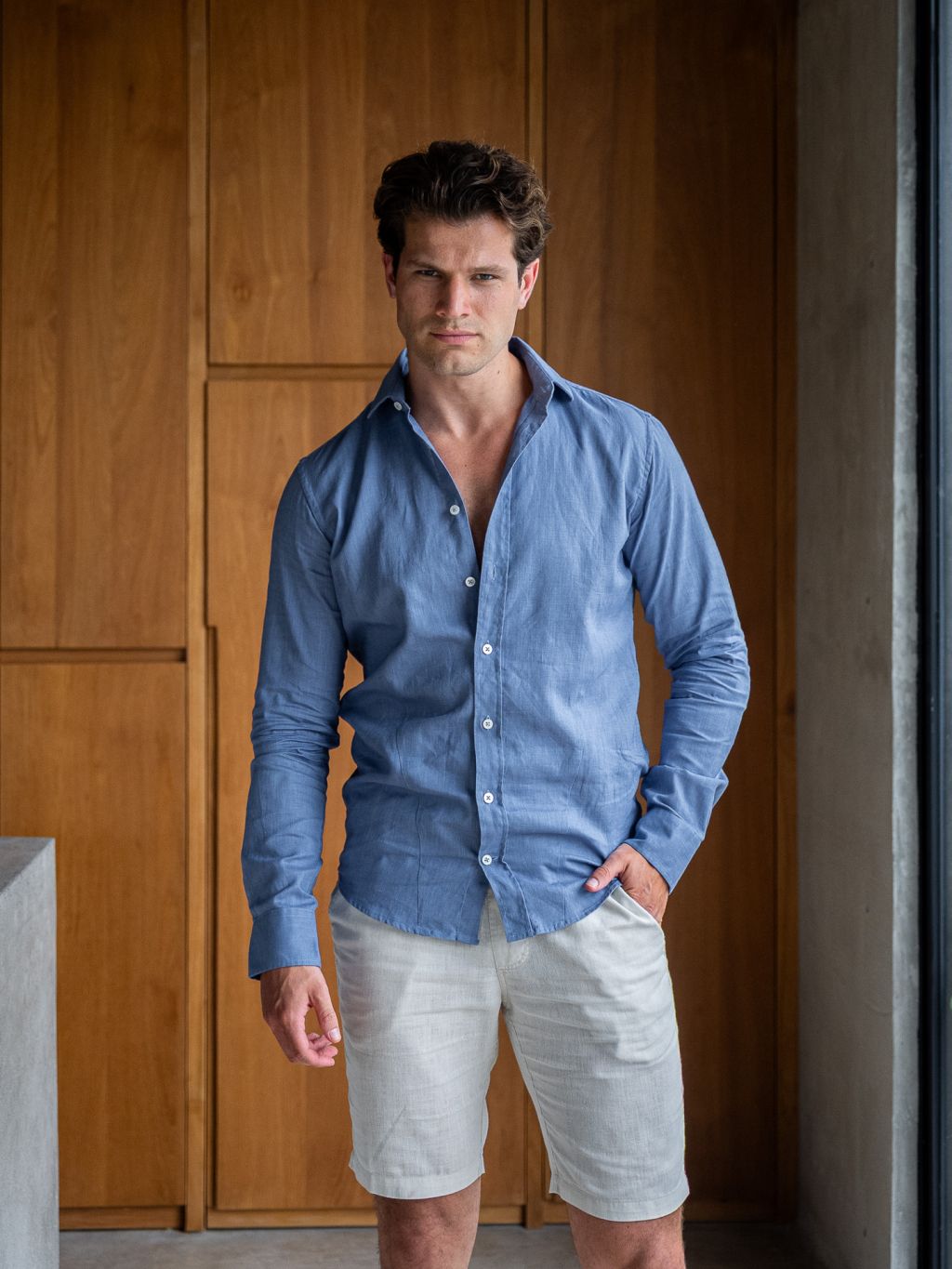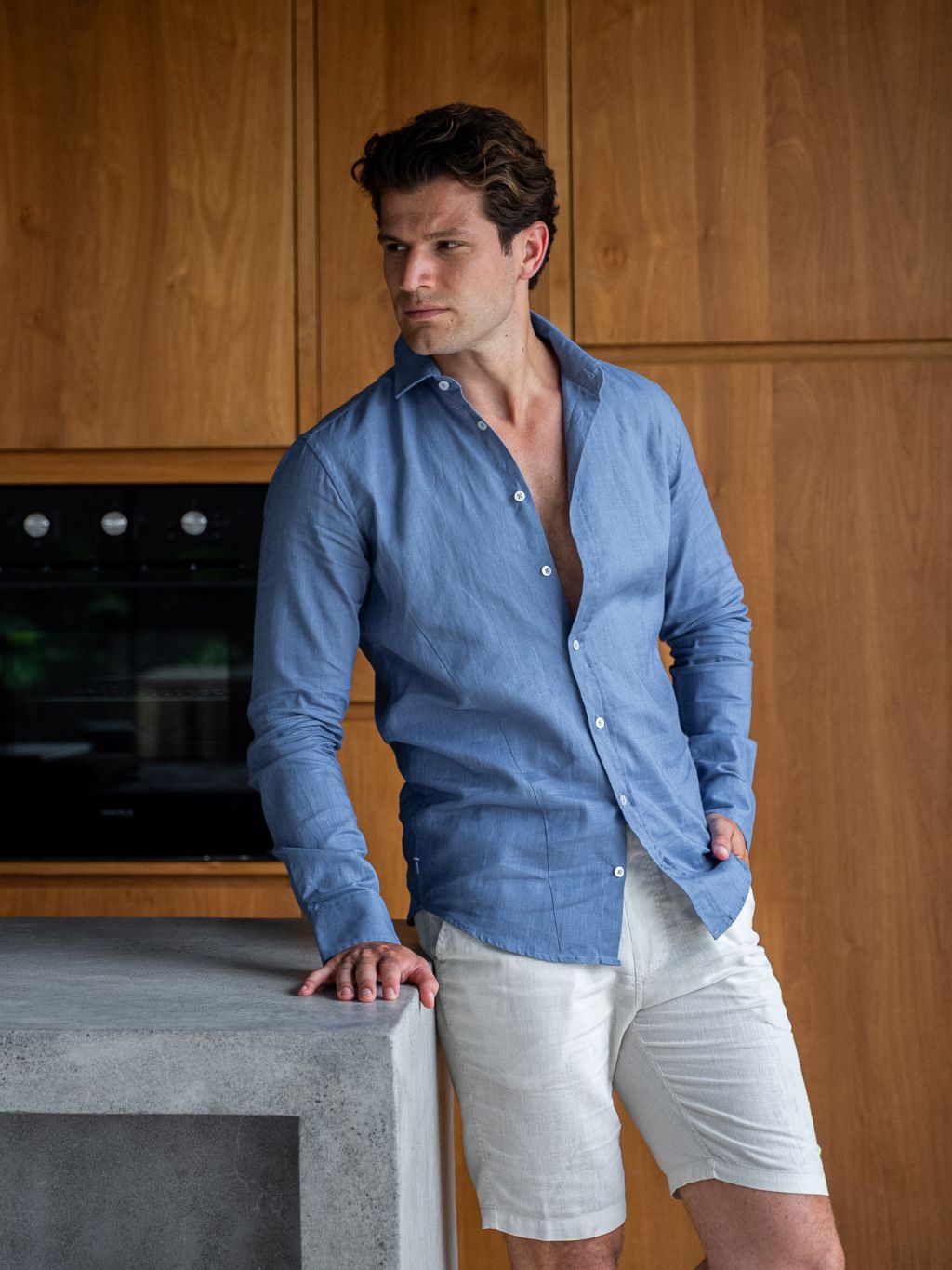 Pánská prodloužená lněná košile 2.0 | Límeček | Dlouhý rukáv | Blue gray