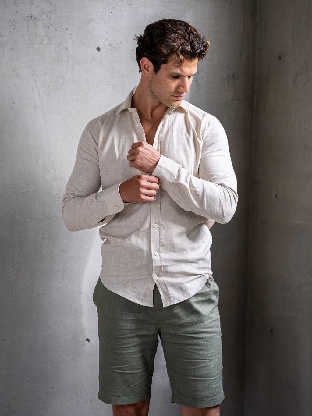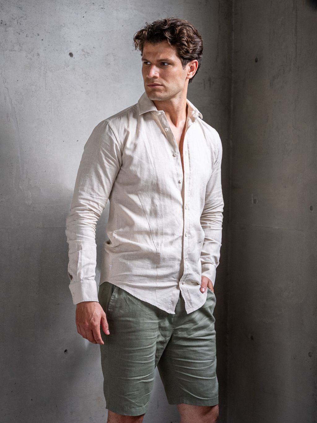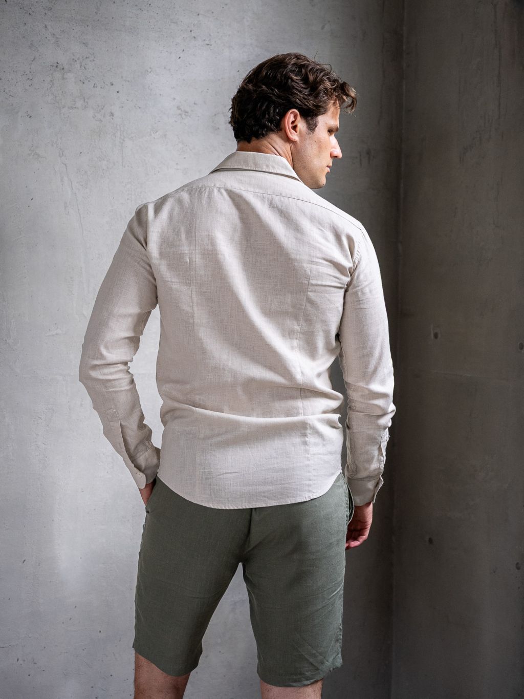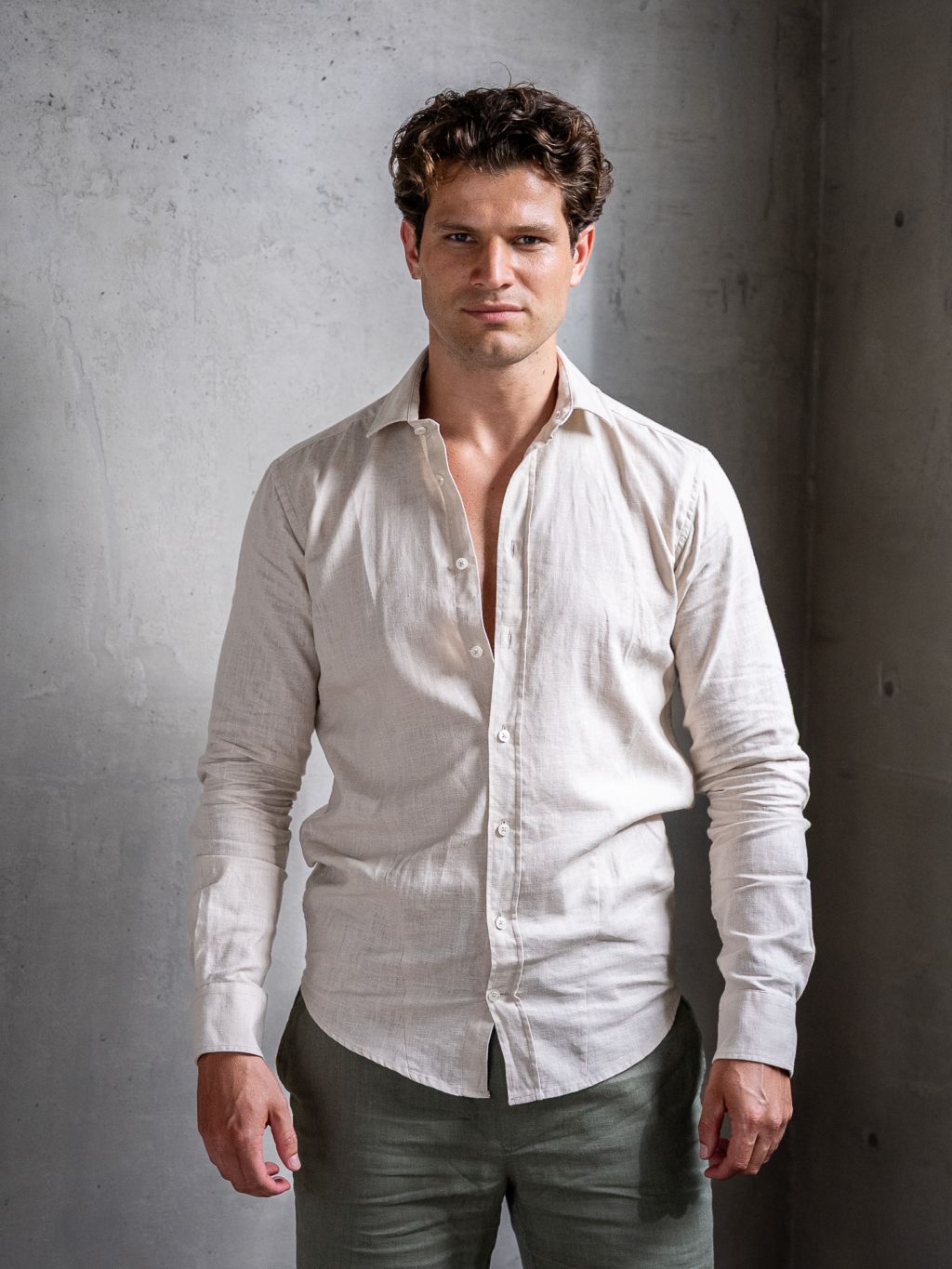 Pánská prodloužená lněná košile 2.0 | Límeček | Dlouhý rukáv | Natural