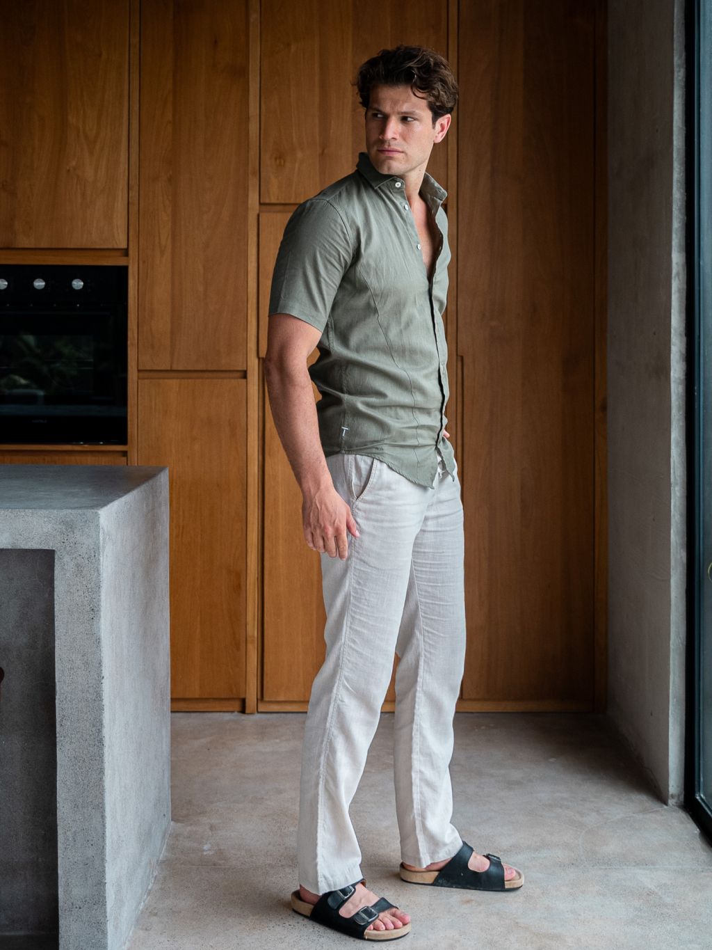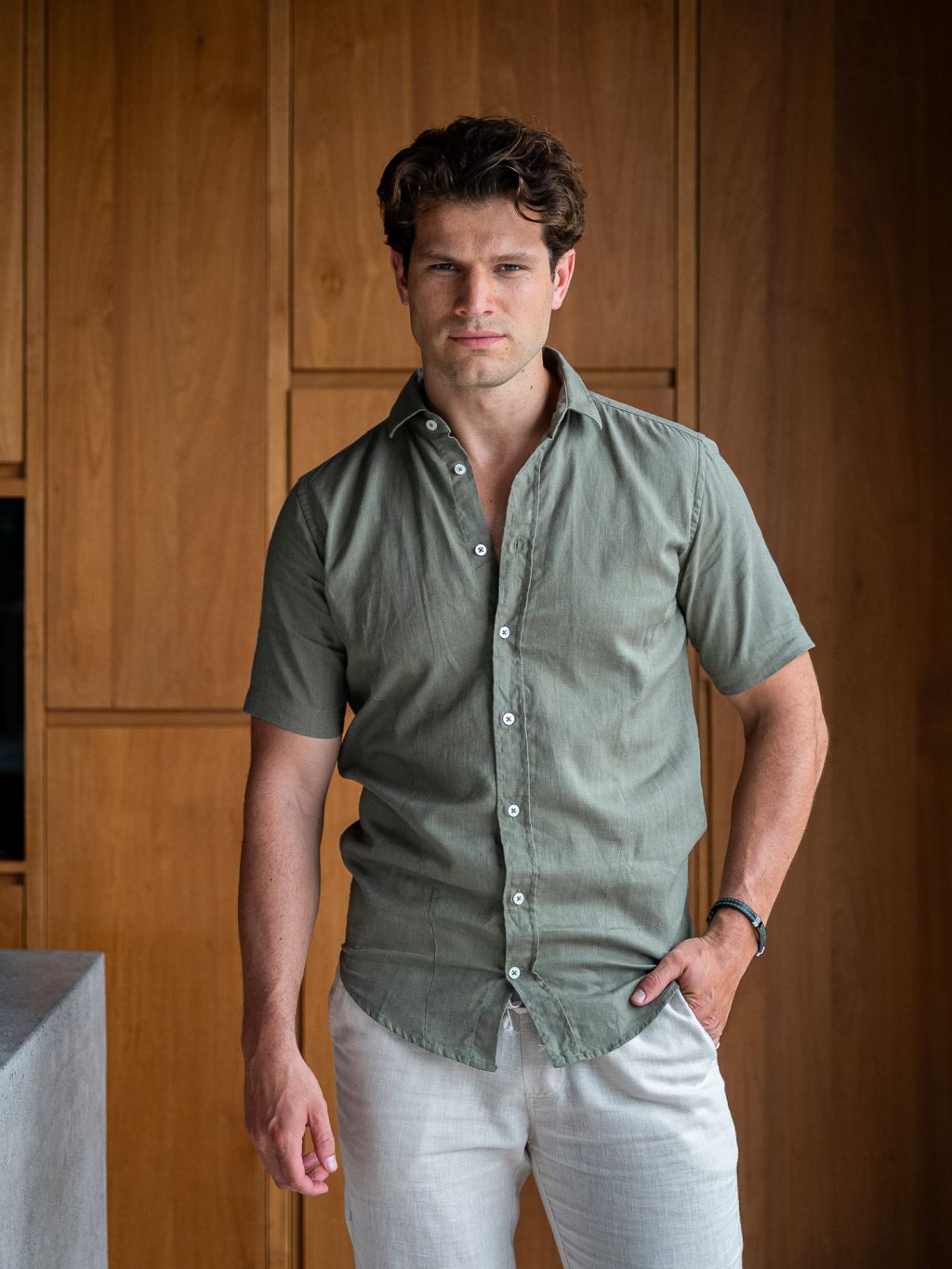 Pánská prodloužená lněná košile | Límeček | Stone Olive