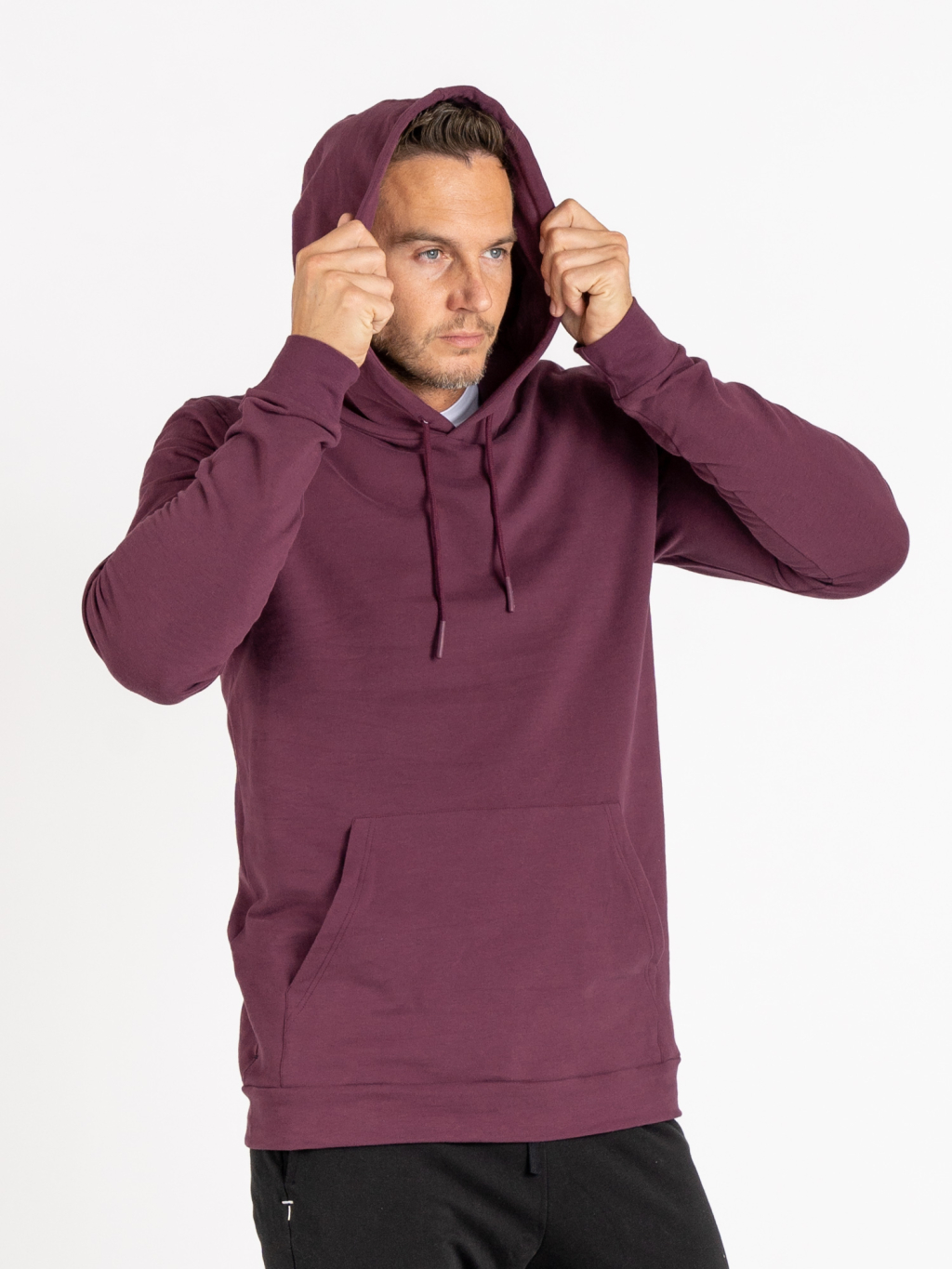 Pánská prodloužená mikina s kapucí | Aubergine | VÝPRODEJ