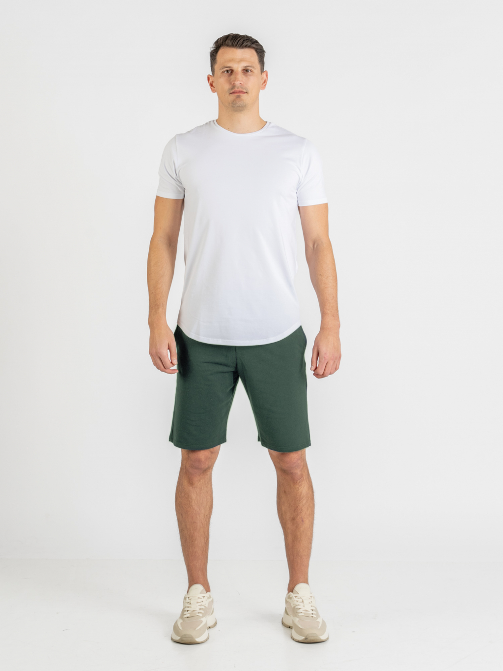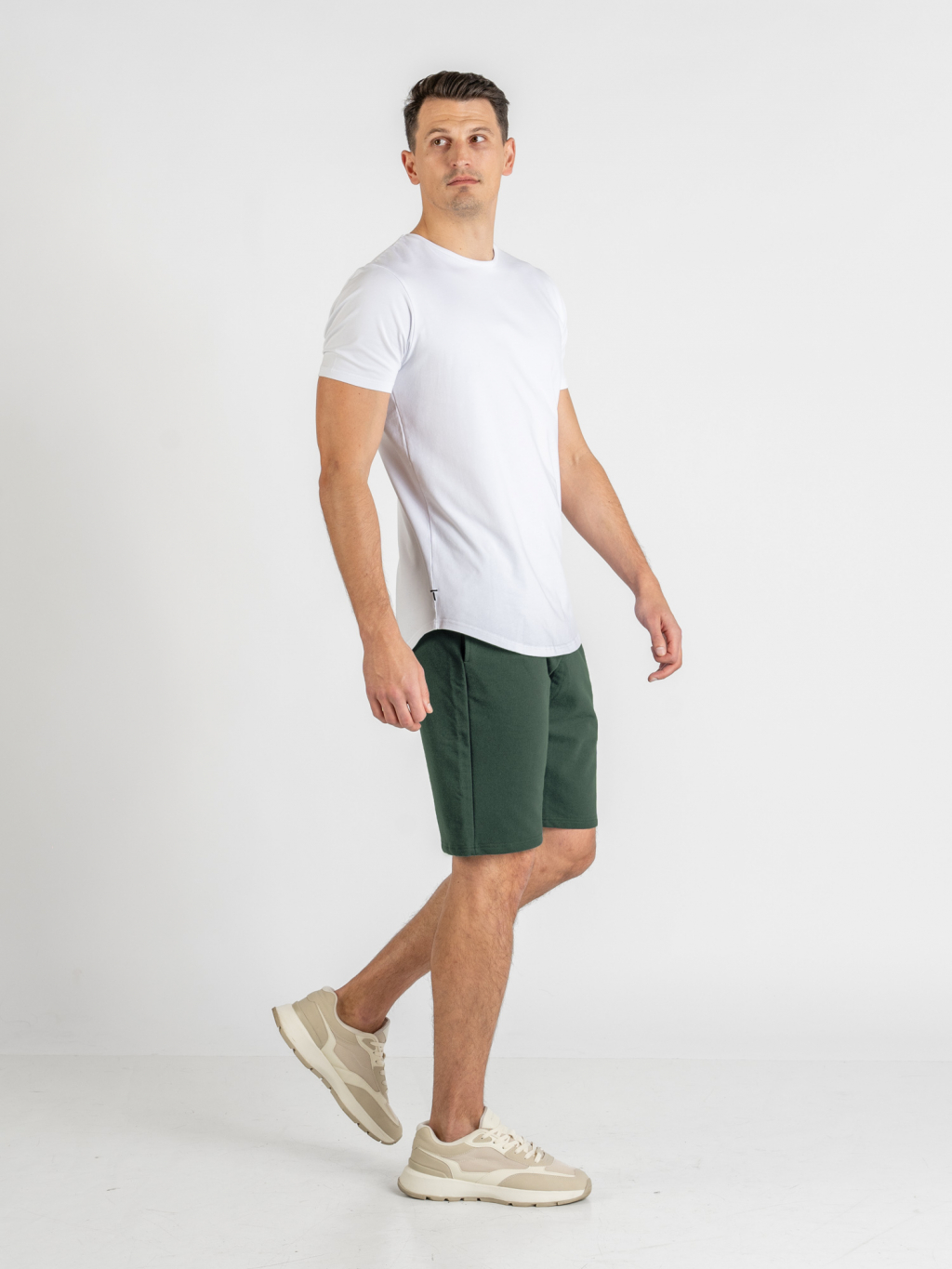 Pánské prodloužené teplákové kraťasy | Khaki