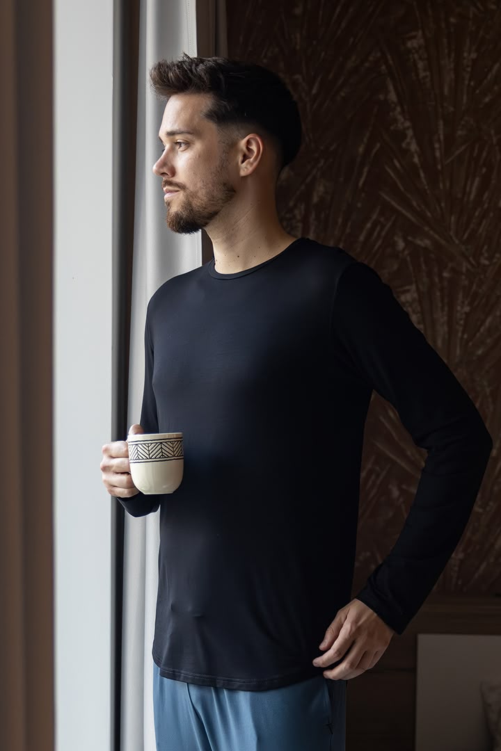 Pánská prodloužená pyžamová trička s dlouhým rukávem z micromodalu, přírodního materiálu vyrobené v ČR jsou vytvořená pro vysoké muže, kteří chtějí teplo, volnost a správnou délku. Materiál je hebký, prodyšný a příjemný, takže tričko zajistí komfortní večery, klidné noci i plynulá víkendová rána v teple domova.