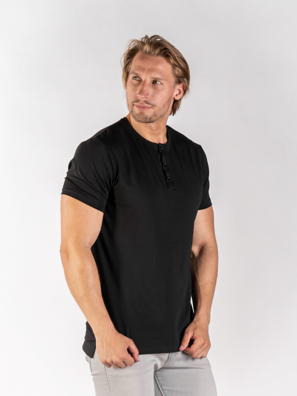 Pánské rozstřižené tričko | knoflíček | Deep black