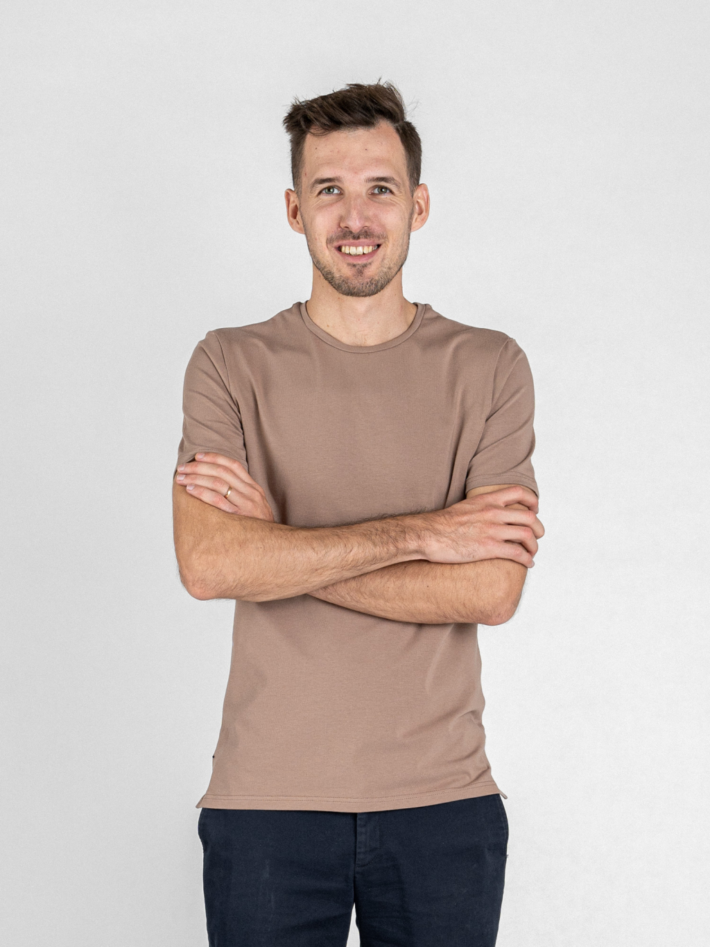 Rád podporuji české podnikatele, proto šijeme výhradně v Česku. Šetrně k lidem i k životnímu prostředí. Trička jsme dlouhé měsíce ve spolupráci s českými švadlenami ladili k dokonalosti od typu výstřihu přes prodloužení až po nenápadné logo. Oblečení jsme dlouho testovali a všechno, co na e-shopu najdete, mám sám ve skříni.