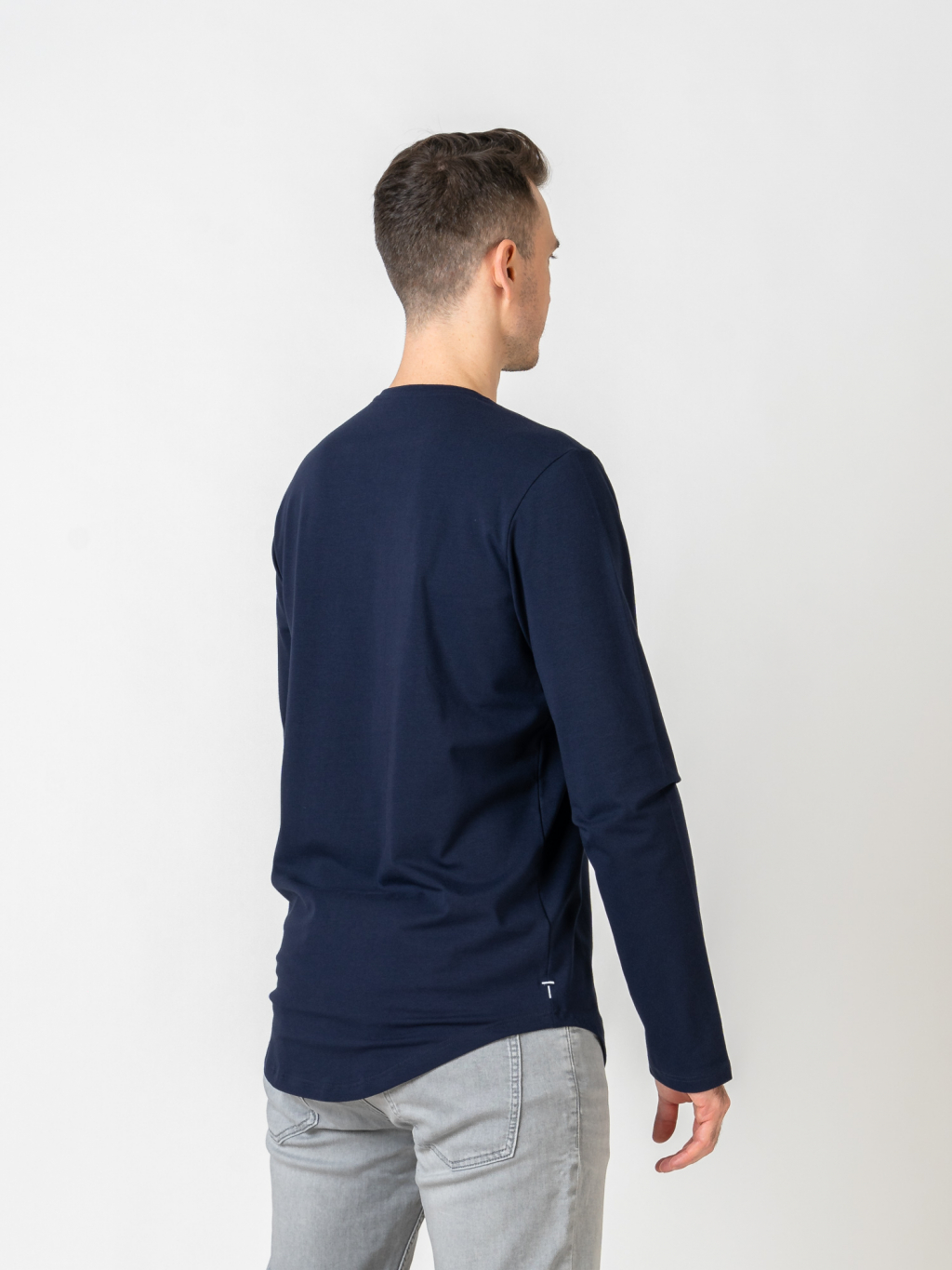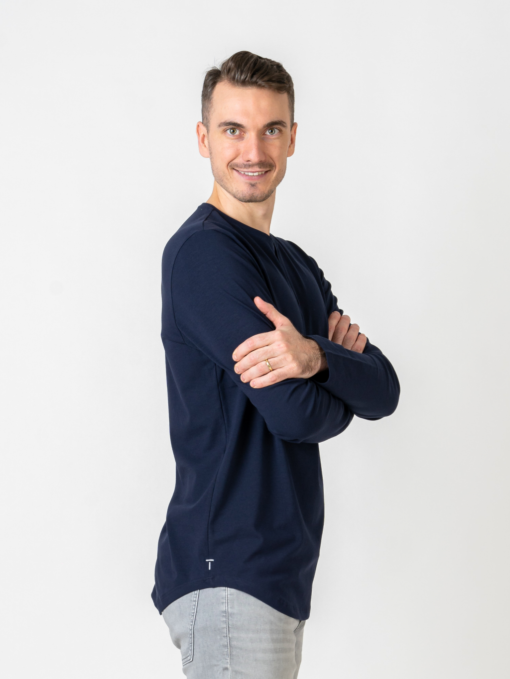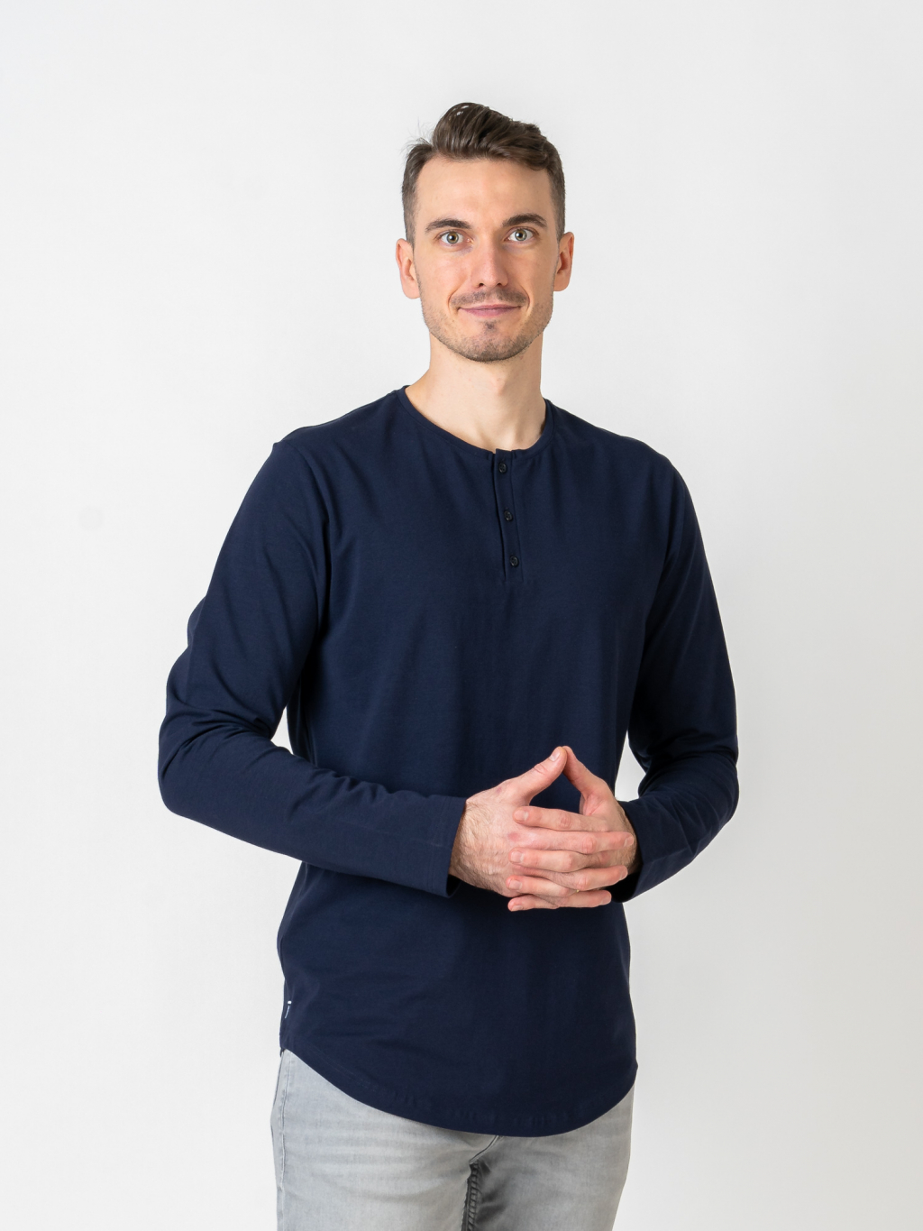 Pánský prodloužený dlouhý rukáv | knoflíček | Navy