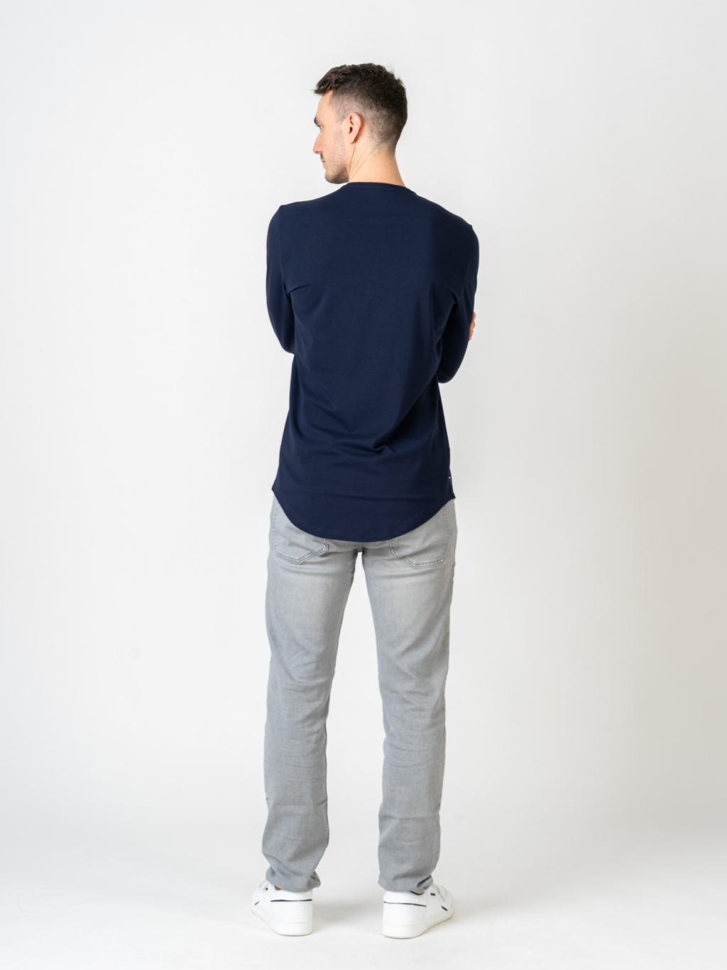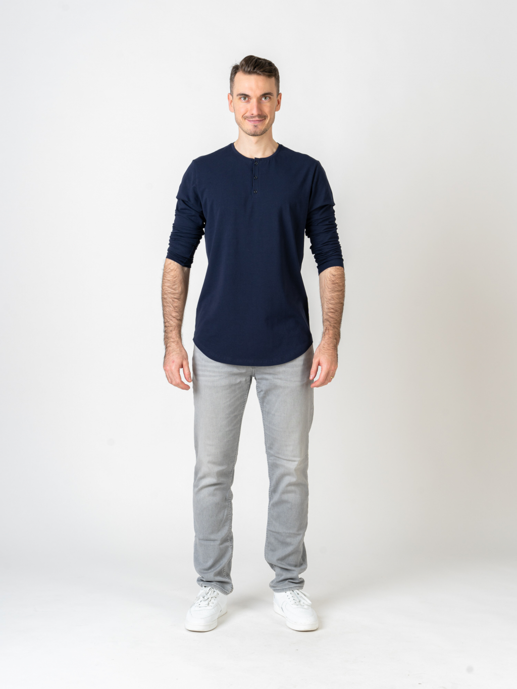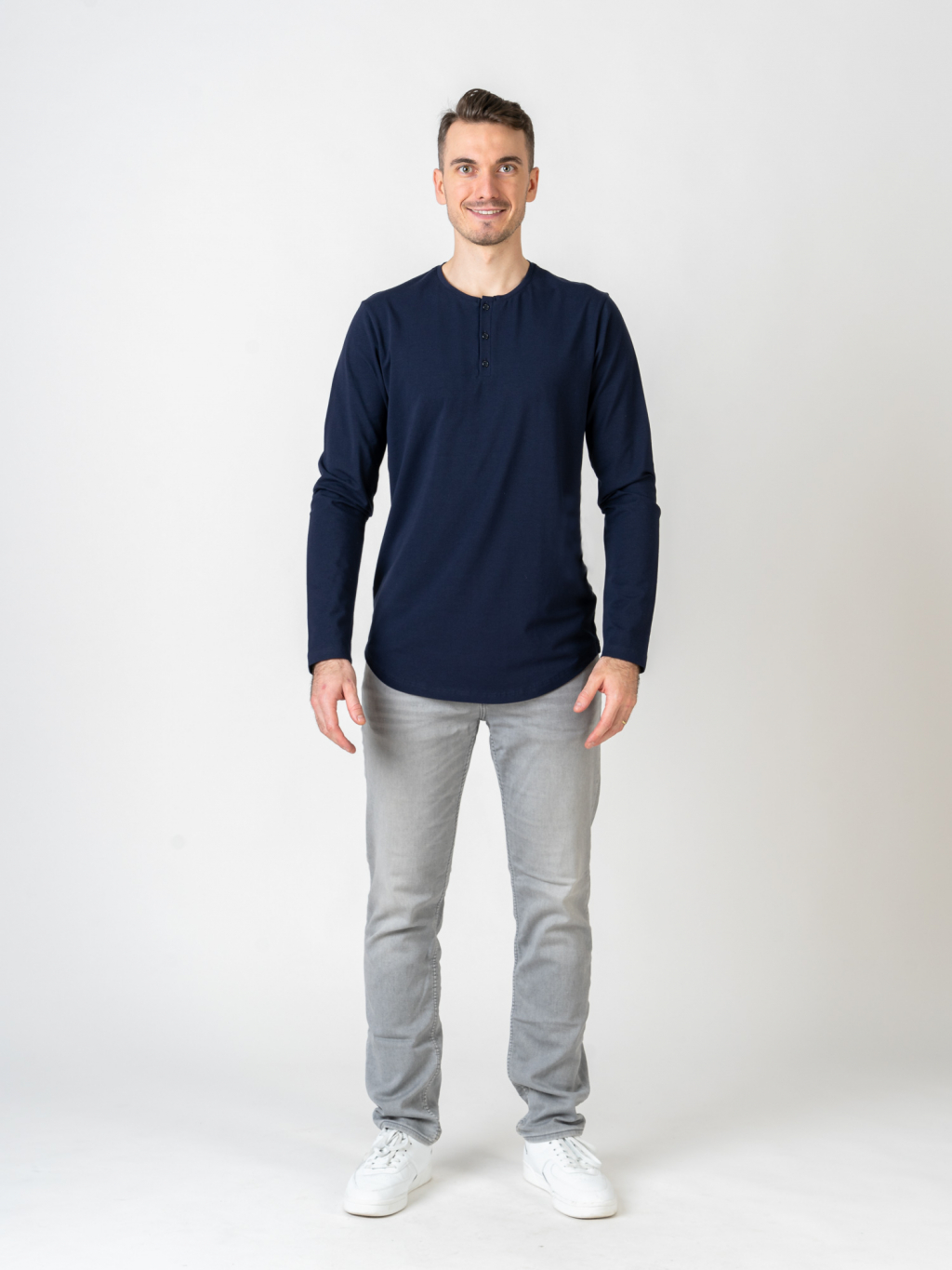 Pánský prodloužený dlouhý rukáv | knoflíček | Navy