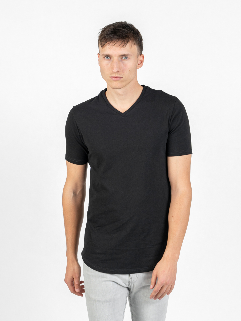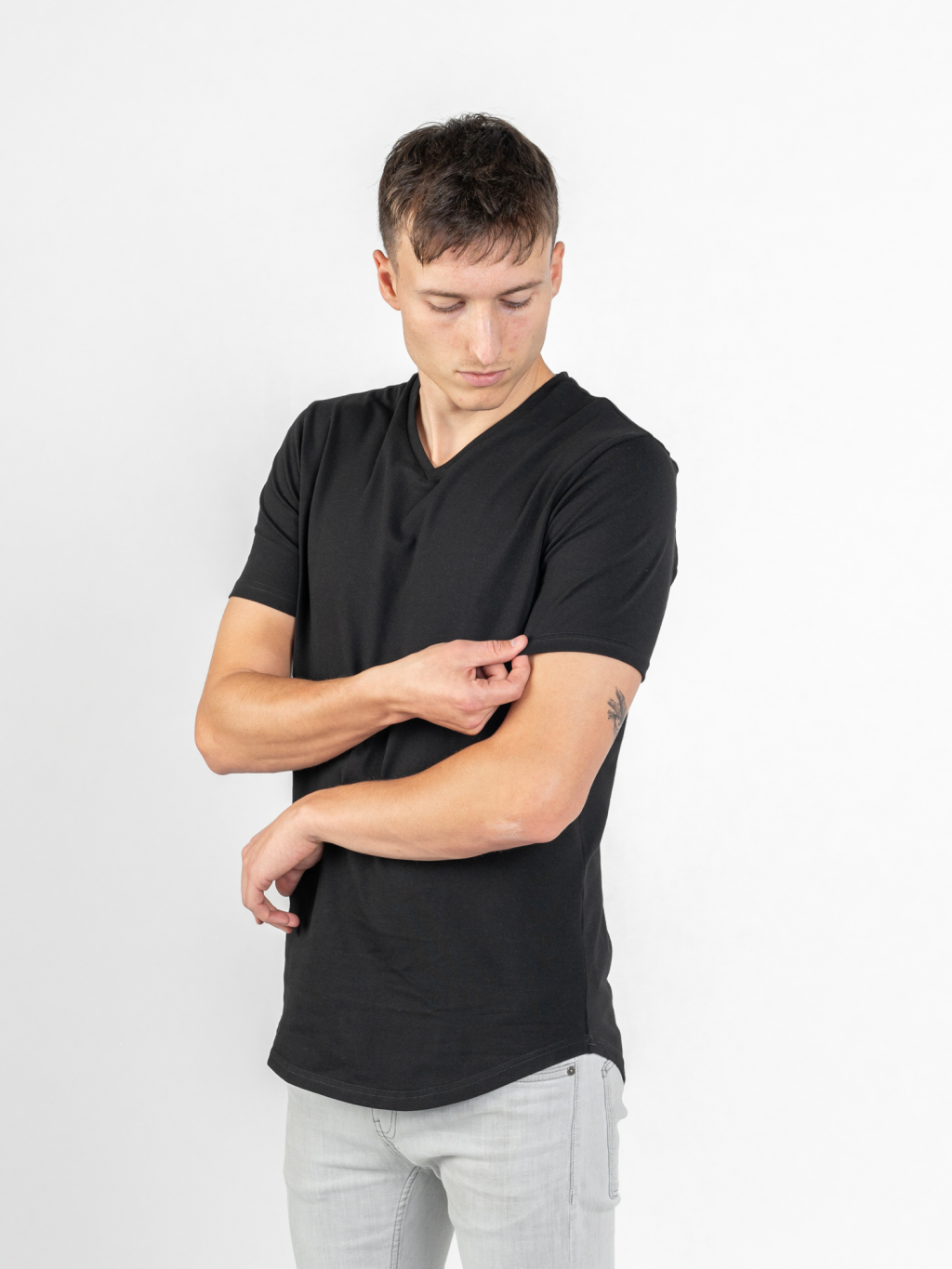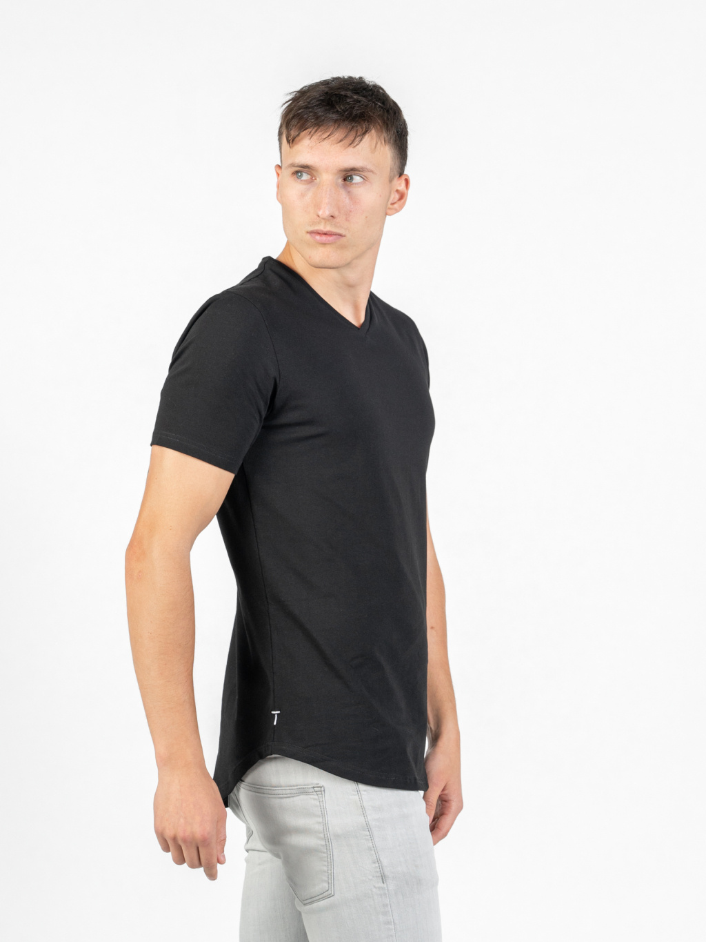 Predĺžené pánske tričko | výstrih do V | Deep black