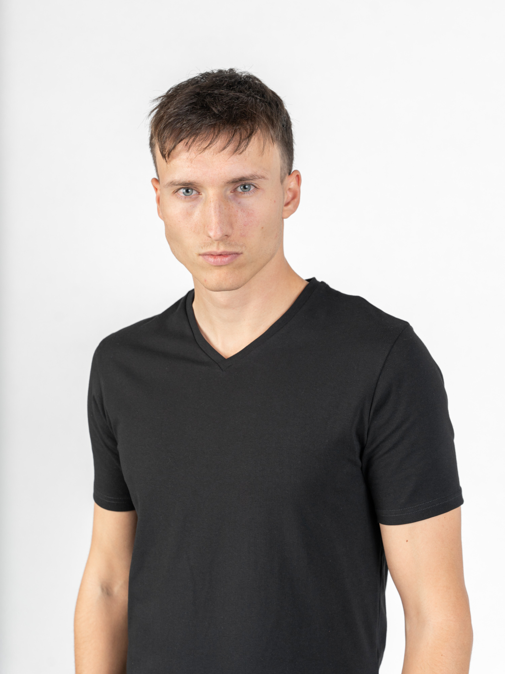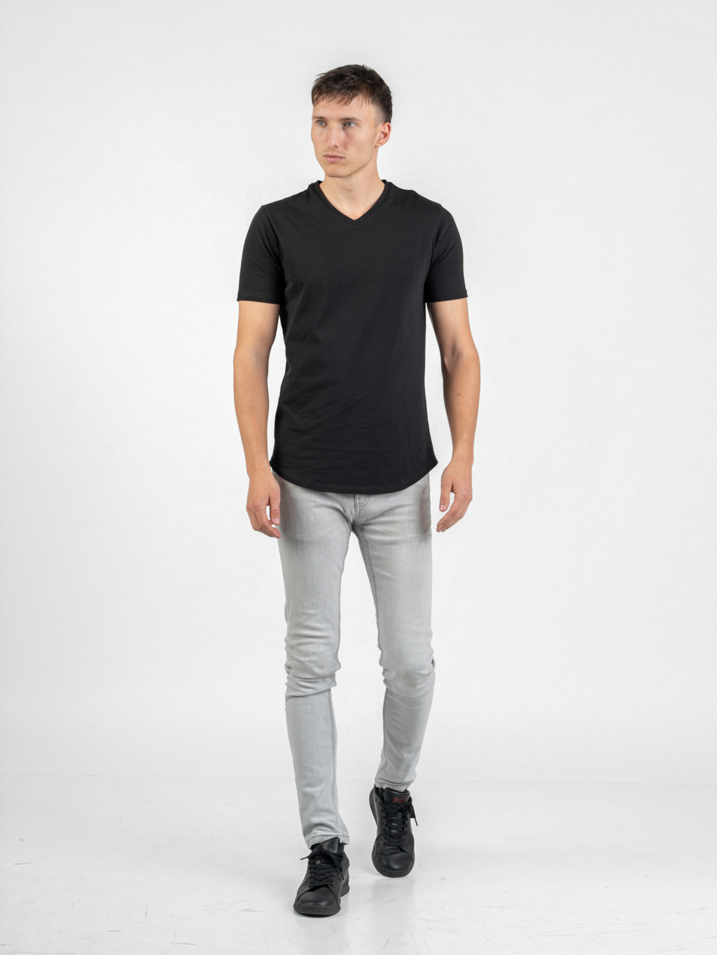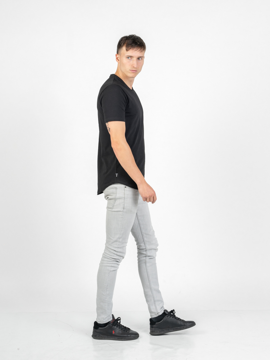 Predĺžené pánske tričko | výstrih do V | Deep black